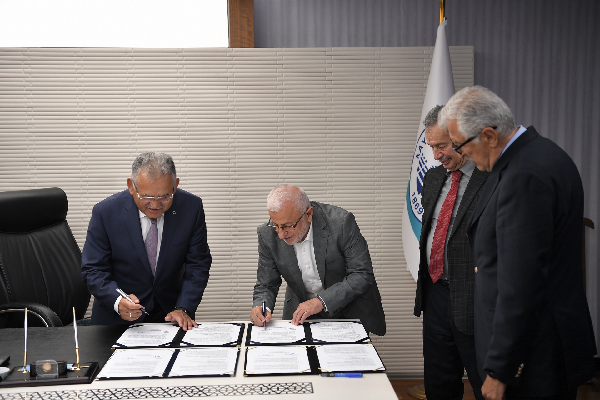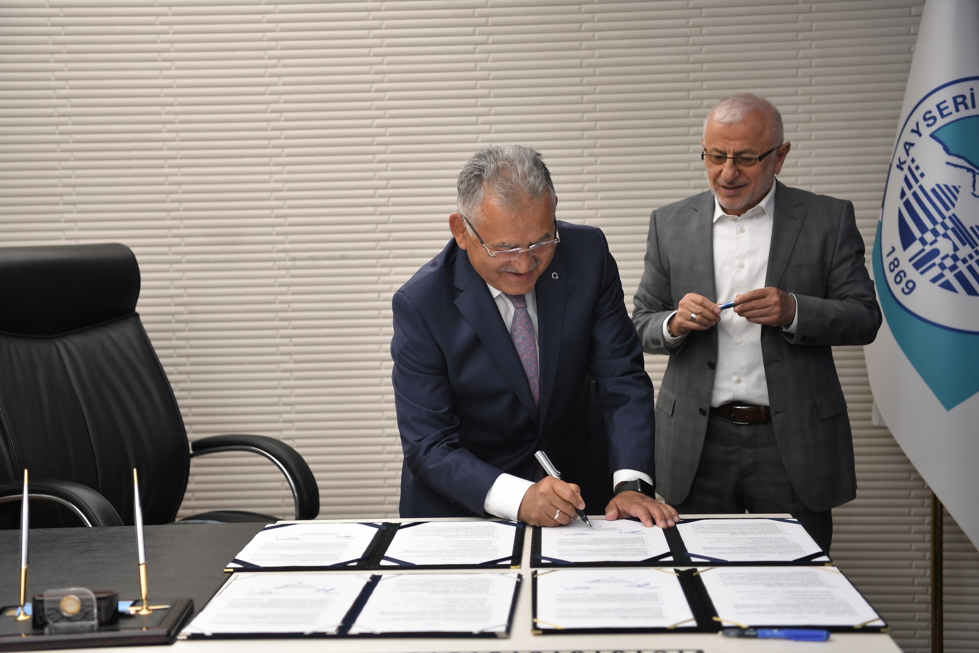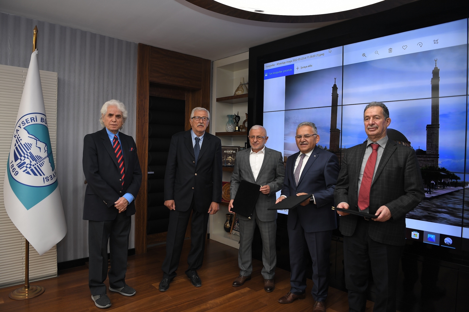 protokol imza törenine Başkan Büyükkılıç, Kayseri İl Müftüsü Yusuf Akkuş ve
