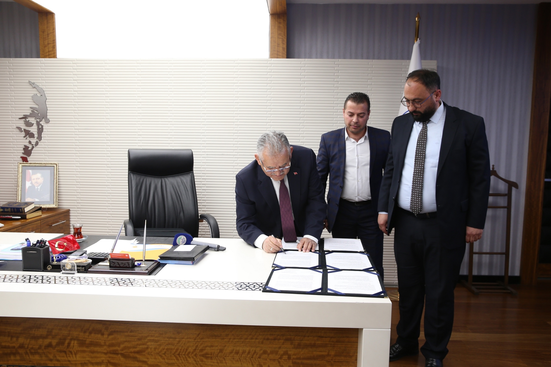 Büyükşehir Belediyesi Başkanlık makamında gerçekleştirilen protokol imza