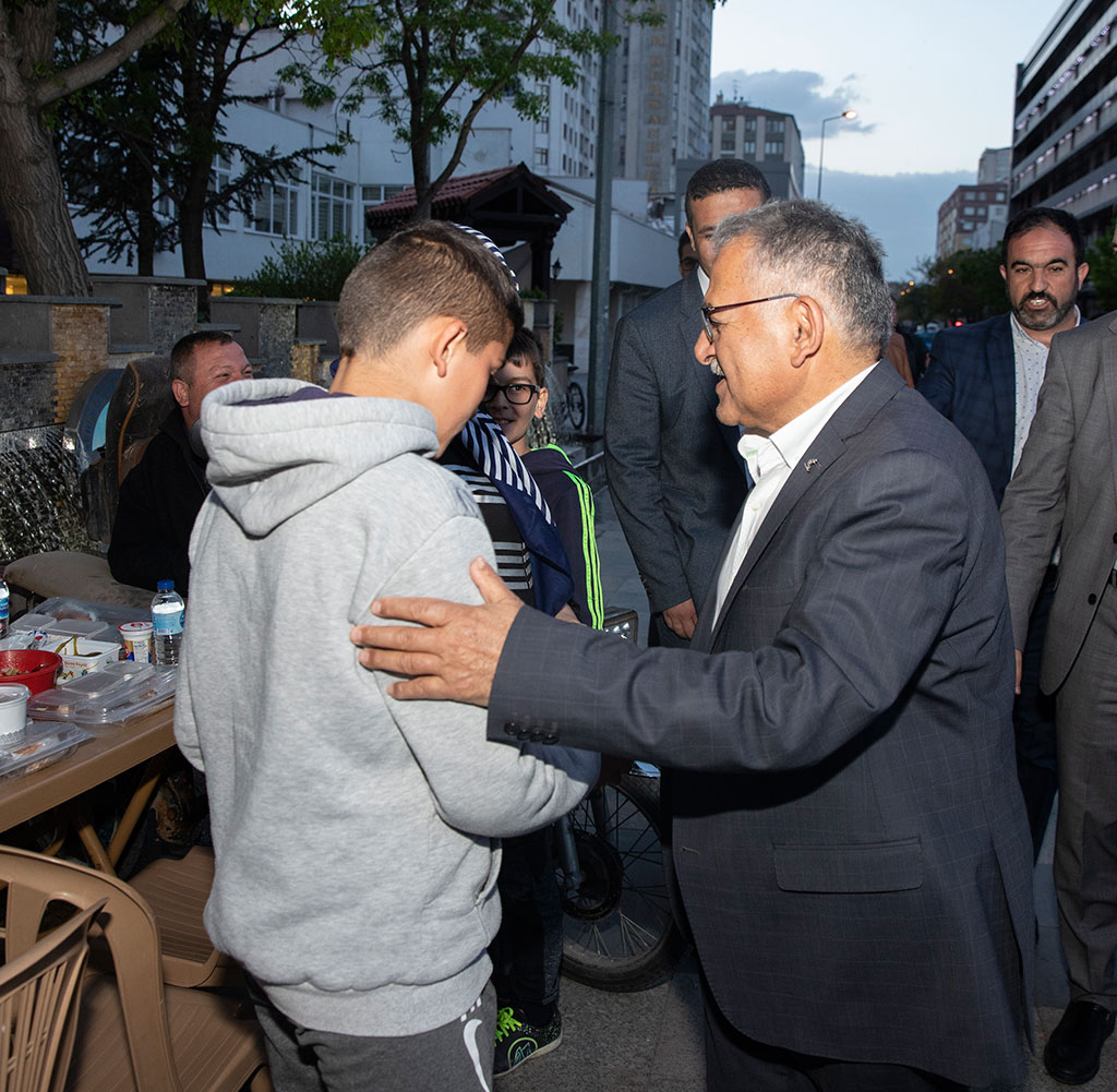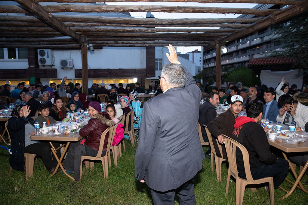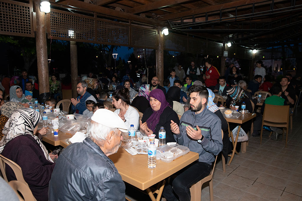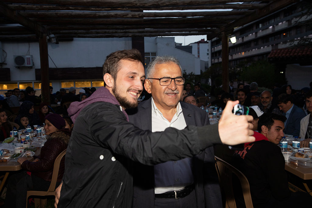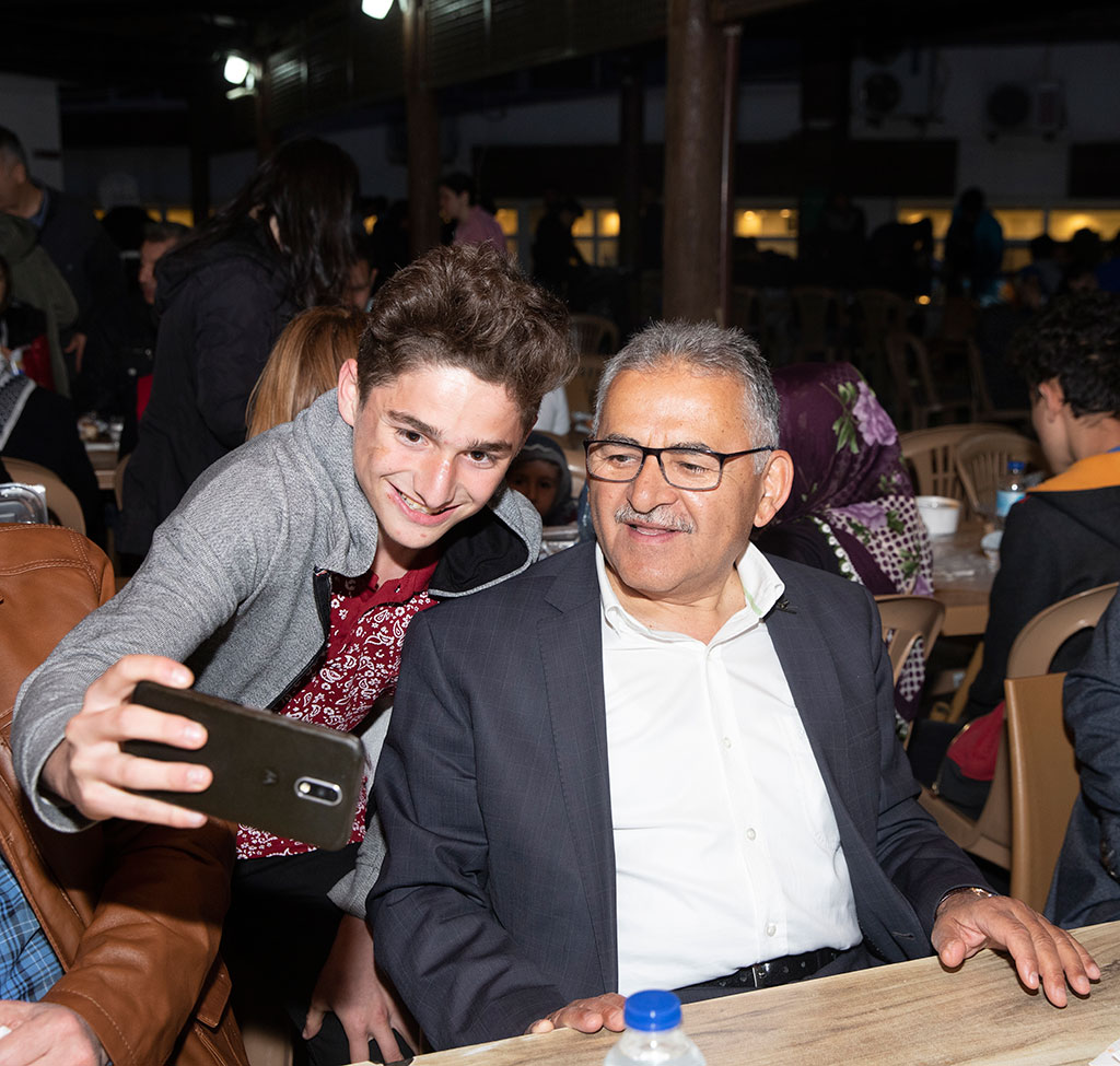 Kayseri Büyükşehir Belediye Başkanı Dr. Memduh Büyükkılıç, Büyükşehir iftarına katıldı. Başkan Büyükkılıç, orucunu Büyükşehir Belediyesi Yemekhanesi ve Muhabbet Çay Bahçesi’ndeki iftarda vatandaşlarla birlikte açtı. Büyükşehir Belediyesi, yağışlı havalar nedeniyle bu yıl iftarı kapalı mekanlara aldı. Büyükşehir Belediyesi Yemekhanesi ve Muhabbet Çay Bahçesi’nde verilen iftar, evlerine yetişemeyen esnaf ve vatandaşların büyük ilgisini gördü. İftara Büyükşehir Belediye Başkanı Memduh Büyükkılıç da katıldı. Yemekhane ve çay bahçesindeki masaları tek tek gezerek vatandaşları selamlayan Başkan Büyükkılıç, orucunu vatandaşlarla birlikte açtı. İftara katılan vatandaşlar, Başkan Büyükkılıç’a bu önemli hizmet nedeniyle teşekkür ettiler.