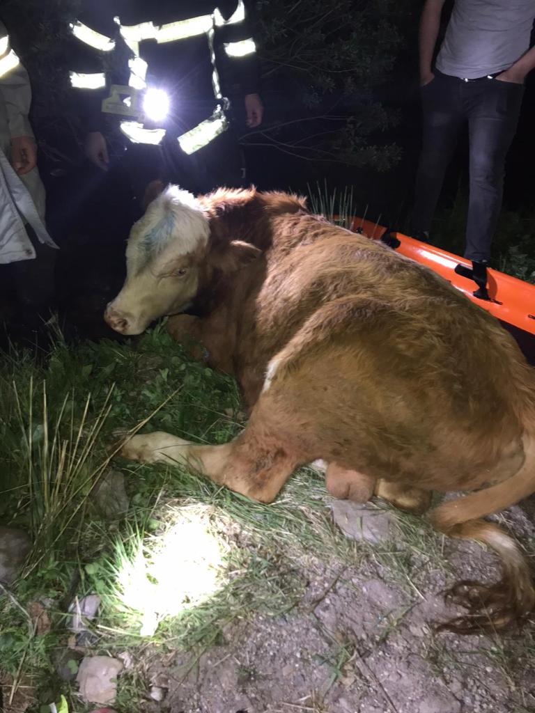 19.26’da gelen bir büyükbaş hayvanın ayağı kırıldığı ve mahsur kaldığı ihbarı