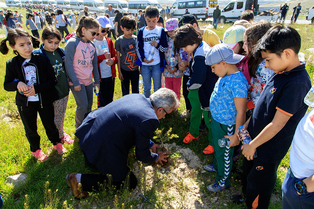 Büyükşehir Belediyesi Kayseri’yi yeşillendirme çalışmalarına devam ediyor. Kocasinan Parkı’nın hem güzelleşmesi, hem de daha yeşil bir görünüme sahip olması için farklı okullardan öğrencilerle çok sayıda fidan dikildi. Büyükşehir Belediyesi’nin parkları ağaçlandırma çalışmaları Kocasinan Parkı’nda da devam ediyor. Kocasinan Parkı’ndaki fidan dikimine çok sayıda öğrenci katıldı. Elleri toprakla buluşan öğrenciler hem Kayseri’nin yeşillenmesine katkı verdiler hem de içlerindeki ağaç sevgisini yeşerttiler. Öğrencilerin katılımıyla Kocasinan Parkı’na Karaçam ve Sedir Fidanları dikildi. Fidan dikimine katılan öğrenciler, böyle bir çalışmaya katılmaktan duydukları mutluluğu dile getirdiler ve herkesi fidan dikmeye davet ettiler.
