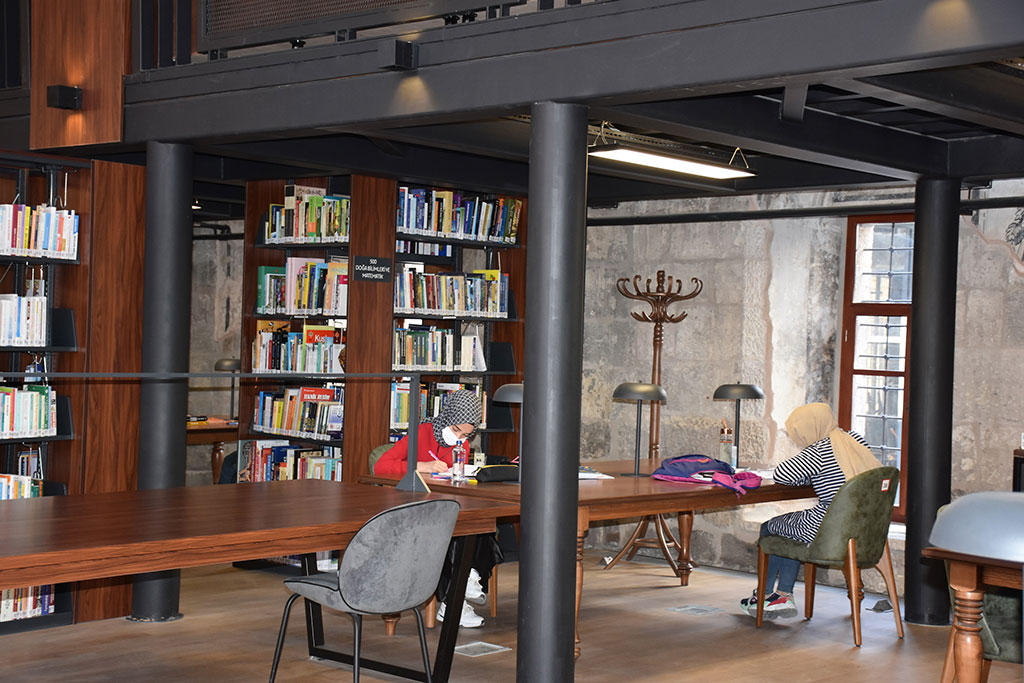 Kayseri Büyükşehir Belediyesi bünyesindeki kütüphaneler, sıkı Covid-19 tedbirleri kapsamında hizmet vermeye devam ediyor. Ateş kontrolü, dezenfektan, kitap sterilizasyon uygulamalarının yapıldığı kütüphanelerde sosyal mesafe kuralı da sıkı sıkıya uygulanarak 4 metrekareye 1 okuyucu gelecek şekilde hizmet veriliyor. Büyükşehir Belediyesi, Kayseri’de salgınla mücadele kapsamında dezenfeksiyon işlemlerine ve denetimlerine devam ederken, geleceğin aynası olarak gördüğü gençlerin eğitimi için özel önem verdiği kütüphanelerinde sıkı Covid-19 tedbirleri uyguluyor. Buna göre Büyükşehir Belediyesi’ne bağlı Merkez Halk Kütüphanesi, Gevher Nesibe Halk Kütüphanesi, Sezai Karakoç Kütüphanesi, Şehir Kütüphanesi, Beyazşehir Kütüphanesi, Argıncık Semt Kütüphanesi, Ziya Gökalp Semt Kütüphanesi’nde sosyal mesafe kurallarına uygun olarak kişi kapasiteleri yeniden düzenledi. Her 4 metrekareye 1 okuyucu gelecek şekilde kütüphaneler hizmet veriyor. Öğrenciler ateş kontrolü ile içeri alınıyor ve kütüphanelerin girişinde ve muhtelif yerlerinde dezenfektanlar bulunuyor. Ayrıca kütüphanelerin içerisinde bütün alanlarda sosyal mesafe kuralları uygulanarak tedbirlere azami hassasiyet gösteriliyor. Büyükşehir Belediyesi gençlerin kütüphanelerde daha güvenli ve daha hijyenik vakit geçirmeleri için hem kütüphanelerin içerisine dezenfeksiyon işlemleri uygulanıyor hem de tüm kitaplar kitap strelizasyon cihazı ile dezenfekte ediliyor. Büyükşehir Belediyesi bünyesindeki kütüphaneler 09.00-18.00 saatleri arasında hizmet veriyor.