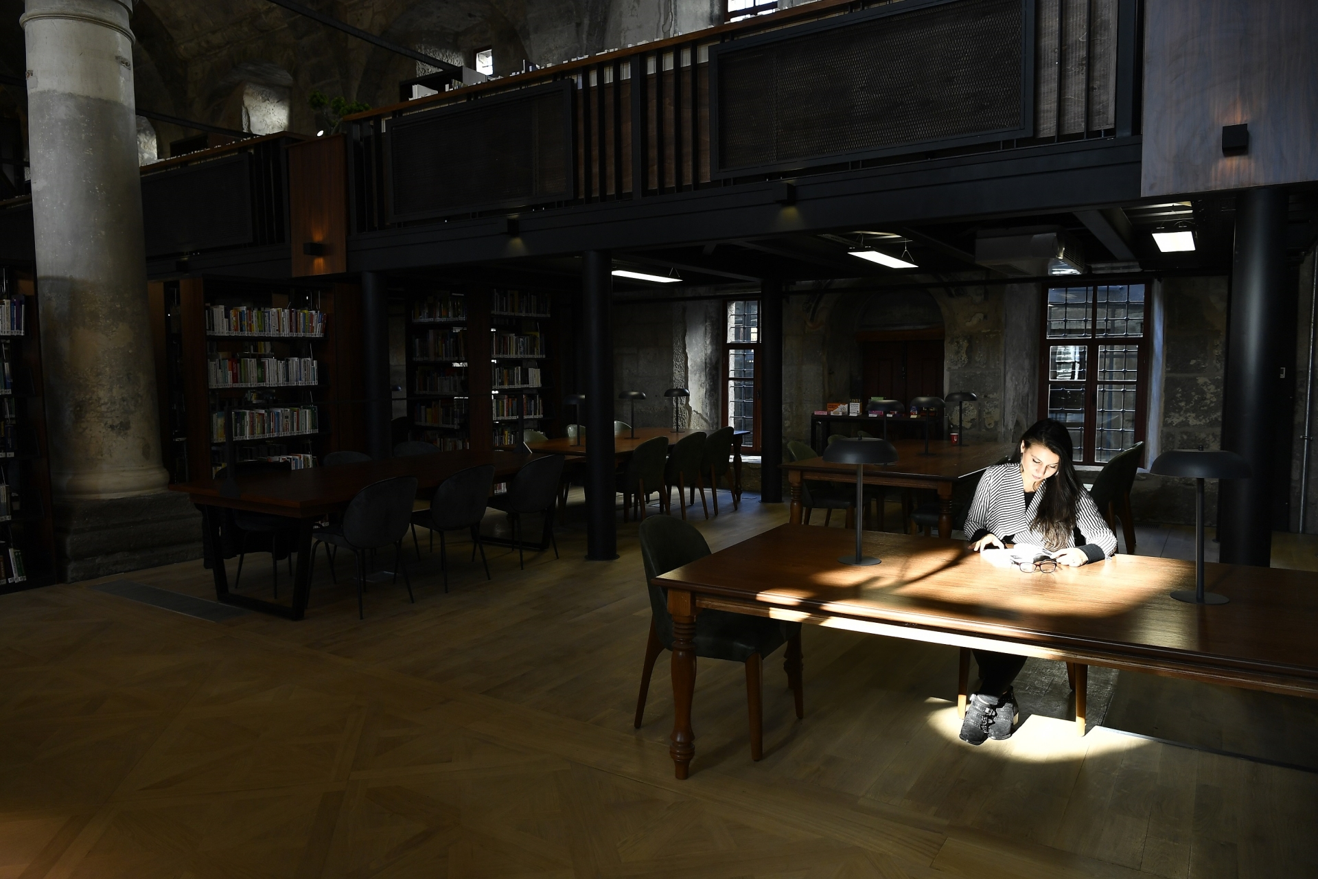 konferans salonu gibi bölümlerin yer alacağı devasa kütüphanede okurlar