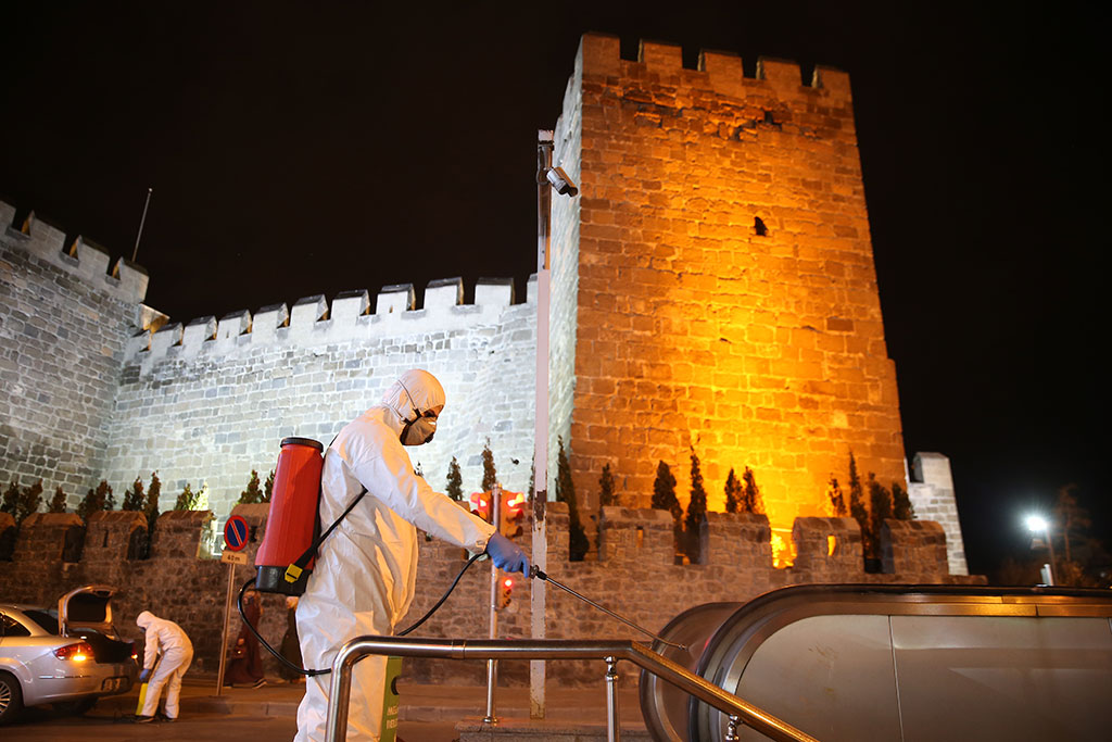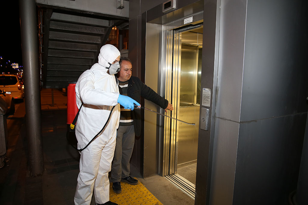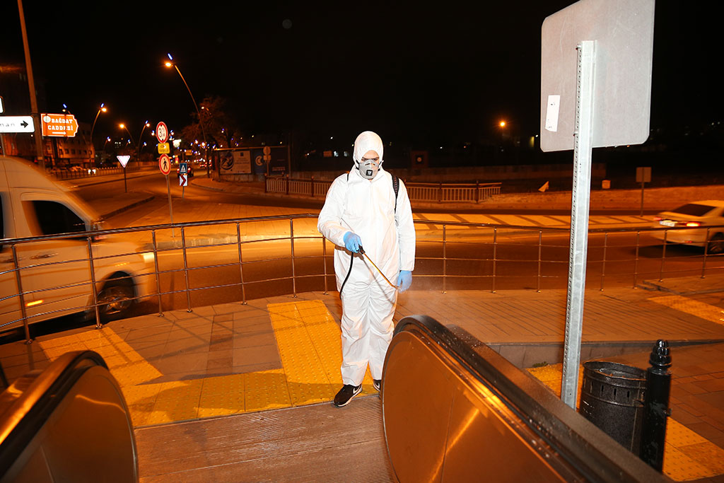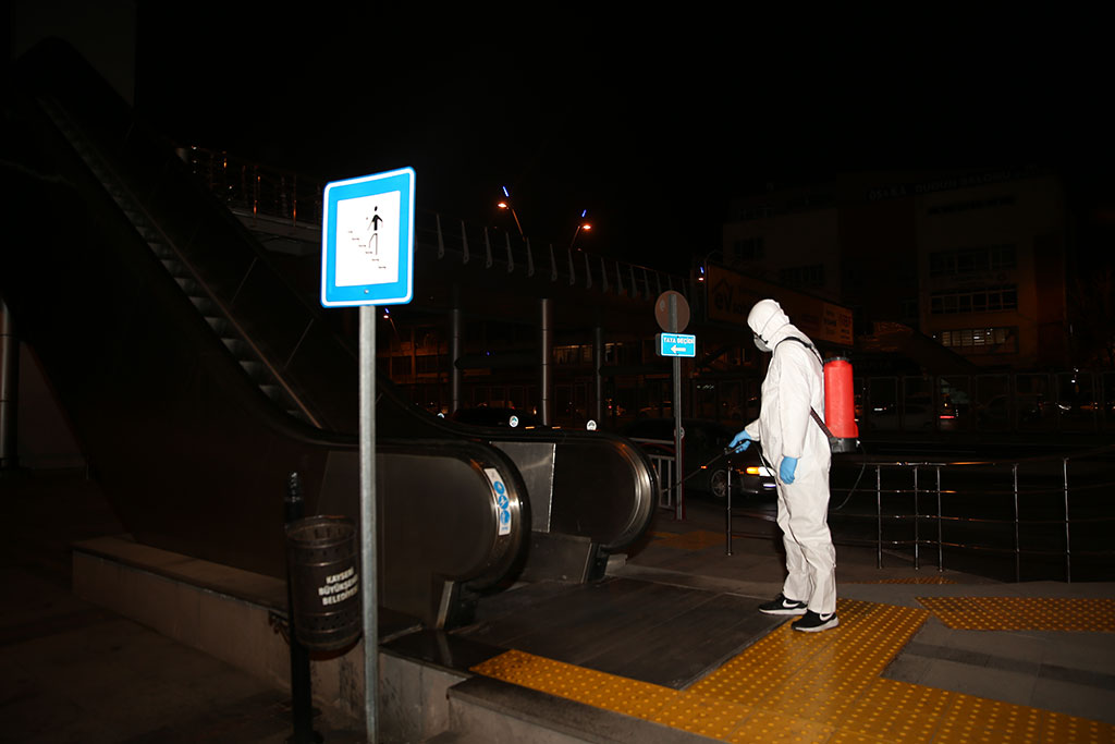 Tüm dünyayı etkisi altına alan Coronavirüs ile mücadeleyi sürdüren Kayseri Büyükşehir Belediyesi toplu olarak kullanılan bütün alanlarda temizlik ve dezenfeksiyon çalışmalarına devam ediyor. Büyükşehir Belediyesi vatandaşların yoğun bir şekilde kullandığı tüm alanlarda temizlik ve dezenfeksiyon işlemlerini büyük bir titizlikle sürdürüyor. Büyükşehir Belediyesine bağlı temizlik ekipleri şehir merkezinde birçok vatandaş tarafından kullanılan tüm alt ve üst geçitleri, yürüyen merdivenleri ve asansörleri dezenfekte ederek vatandaşların salgından korunmaları için yapılması gereken çalışmaları eksiksiz bir şekilde yerine getiriyor. Büyükşehir Belediyesi’nin gerçekleştirdiği dezenfeksiyon ve temizlik çalışmaları kamuya açık tüm alanlarda aralıksız olarak devam ettirilecek.