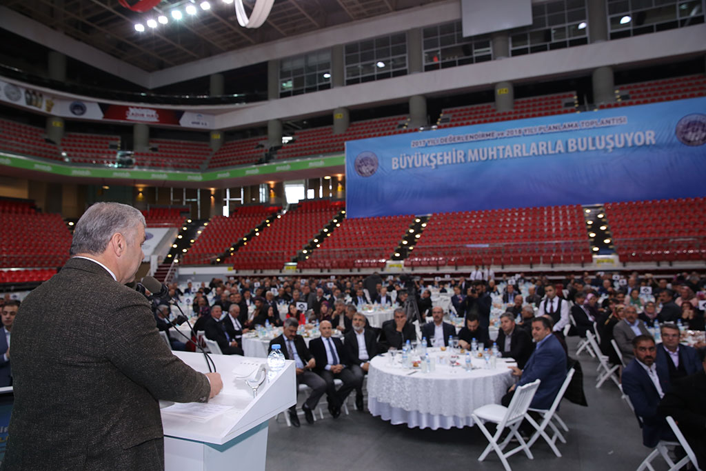 Büyükşehir Belediye Başkanı Mustafa Çelik, “Büyükşehir Muhtarlarla Buluşuyor” adı altında yaptığı toplantıyla kent merkez ve ilçelerdeki muhtarlarla bir araya geldi. İlçeler ve kent merkezindeki muhtarlarla ayrı ayrı bir araya gelen Başkan Mustafa Çelik, Büyükşehir Belediye Başkanlığı dönemindeki yaklaşık üç yılda yapılanları değerlendirdi. Başkan Mustafa Çelik, 1,5 milyar TL’lik yatırımla yaklaşık 5 bin 700 noktada iş yaptıklarını söyledi. “Büyükşehir Muhtarlarla Buluşuyor” toplantısı Kadir Has Spor ve Kongre Merkezi’nde yapıldı. 2017 yılının değerlendirilmesi ve 2018 yılının planlanması amacıyla yapılan iki ayrı toplantıdan ilkine Akkışla, Bünyan, Felahiye, Özvatan, Pınarbaşı, Sarıoğlan, Sarız, Tomarza, Yahyalı ve Yeşilhisar ilçelerinden gelen ilçe belediye başkanları, belediye meclis üyeleri ve muhtarlar ile aileleri katıldı. Toplantıya Enerji ve Tabii Kaynaklar Eski Bakanı ve Kayseri Milletvekili Taner Yıldız ile Kayseri Milletvekili İsmail Tamer de iştirak etti. “MUHTARLAR DEMOKRASİMİZİN TEMEL TAŞLARI” Muhtarlarla öğle yemeğinde bir araya gelen Büyükşehir Belediye Başkanı Mustafa Çelik, muhtarların demokrasinin temel taşları ve belediyelerin sinir uçları olduğunu belirterek, “Sinir uçlarından gelen sinyallere göre beynin vücudu hareket ettirdiği gibi sizlerden gelen sinyallere göre hizmetlerimizi yönlendiriyor, kendimize yön veriyoruz. Aynı zamanda sizler bizim fahri müfettişlerimizsiniz. Sahadaki yaptığımız işlerin hem kontrol mühendisi hem de kabul heyetisiniz. Hata ve eksik mutlaka oluyordur; ama en az hatayla en iyi işi çıkarmak için gayret ettiğimizi bilmenizi isterim. Kar kış, gece gündüz demeden koşturuyoruz” dedi. “1,5 MİLYAR TL’LİK YATIRIM YAPTIK” Bütünşehir Yasası çıktıktan sonra 16 ilçenin tamamının Büyükşehir Belediyesi’nin hizmet alanına girdiğini ifade eden Başkan Mustafa Çelik, sözlerini şöyle sürdürdü: “Göreve geldiğim ilk gün vurguladığım en önemli konuların başında ilçeler geliyordu. İnsanları doğdukları yerde doyuralım mutlu oldukları yerde yaşatalım dedik. Bu anlayışla ilçelere çok daha fazla ağırlık veriyoruz. 2,5 senede hiçbir belediyenin yapamadığı kadar ilçelere yatırım yaptık. Rekor sayıda işler yapıyoruz.” Üç yılda yapılan çalışmalarla ilgili rakamlar veren Başkan Çelik, 2015-2017 yılları arasında 742 adet ihale yaptıklarını söyledi. Bu ihalelerin bedelinin 1,5 katrilyon lira olduğunu ve doğrudan teminler ile yapılan işlerin bu rakama dahil olmadığını vurgulayan Büyükşehir Belediye Başkanı Çelik, “2015-2017 arasında 5700 noktada hizmet yaptık. Bu sürede 656 kilometre sıcak asfalt, 1310 kilometre sathi kaplama yaptık. 2 milyon 650 bin metrekare kilitli parkeyi ilçelerimize ulaştırarak çamurdan kurtardık. 42 adet spor sahası yaptık. 259 tarım ekipmanı dağıttık. 344 adet çocuk oyun parkı, 275 bin metrekare yeşil alan yaptık. 12 adet kadın ve gençlik merkezini hizmete açtık. 2 bin nüfuslu ilçelerde dahi yüzme havuzu başta pek çok etkinlik alanını barındıran sosyal yaşam merkezleri var. Pınarbaşı ve İncesu’da yer sorunu nedeniyle daha sonra başladığımız kadın ve gençlik merkezleri devam ediyor. İnşallah baharla birlikte açarız. Merkezdekilerle birlikte 17 sosyal yaşam merkezi oluyor. Şehir merkezinde 4 köprülü kavşağı geçen sene bitirmiştik. Şimdi 6 tane devam eden köprülü kavşak çalışması var. Üç tane köprülü kavşağa da baharla birlikte başlayacağız” dedi. “BELEDİYEMİZDEN MEMNUNİYET ORANI %80’LERİ GEÇTİ” Konuşmasında halkın memnuniyetini tespit için anket çalışmaları yaptırdıklarını da açıklayan Başkan Mustafa Çelik, bu anketlerde belediyenin çalışmalarından memnuniyet oranının yüzde 80’lerin üzerine çıktığını söyledi. Muhtarlarla geçen yıl yapılan toplantıda da talep formları kanalıyla talepler aldıklarını hatırlatan Başkan Çelik, “Taleplerinizi bir program halinde ele aldık ve uygulanabilir olanları yaptık. Bu yıl da yine sizden taleplerinizi bekliyoruz. Biz yeter ki birlik beraberlik içinde olalım. Yeter ki tek hesabımız Allah’ın rızası milletin duası olsun. Bu hesap içinde olursak Rabbim önümüzü açıyor” diye konuştu. “Büyükşehir Muhtarlarla Buluşuyor” toplantısına katılan AK Parti Kayseri Milletvekili İsmail Tamer de hiçbir büyükşehir belediyesinin yapamayacağı hizmetlerin Kayseri’de yapıldığını belirterek Başkan Çelik’e teşekkür etti. Muhtarlara büyük önem verdiklerini ifade eden Tamer, “Muhtarlara verdiğimiz değerin en büyük göstergesi Cumhurbaşkanımız Recep Tayyip Erdoğan’ın sık sık Beştepe’de muhtarlarla yaptığı toplantıdır” dedi. Enerji ve Tabi Kaynaklar Eski Bakanı ve Kayseri Milletvekili Taner Yıldız da bir konuşma yaparak Başkan Mustafa Çelik’in dile getirdiği 1,5 katrilyonluk yatırımın büyüklüğüne dikkat çekti. Bu yatırımla Kayseri’nin en ücra mahallesine kadar hizmetin götürüldüğünü dile getiren Yıldız, “2002 yılında Kayseri Büyükşehir Belediyesi bütçesinden daha düşük yatırım bütçeli bakanlıklar vardı. Kayseri’de, Türkiye’de ne oldu diyenler için bu rakam bile en büyük delildir. Başkanımıza ve ekibine teşekkür ediyorum” diye konuştu. Konuşmaların ardından Büyükşehir Belediye Başkanı Mustafa Çelik, katılan tüm muhtarlarla gruplar halinde ve tek tek “Büyükşehir Muhtarlarla Buluşuyor” fonu önünde fotoğraf çektirdi.