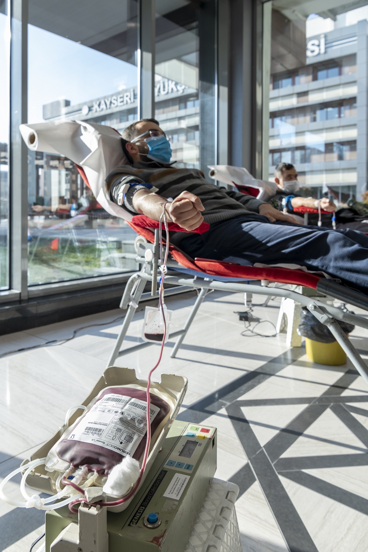 Hizmet Binası’nda görevli personel de Erciyes Üniversitesi Kan Merkezi’ne kan