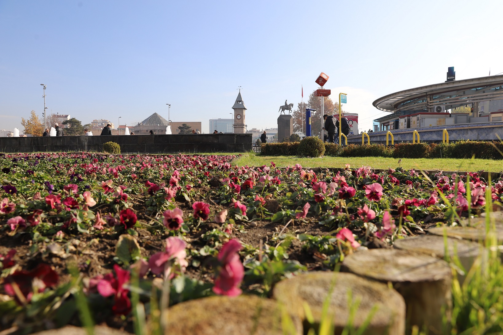 meydanlar ve peyzaj alanlarına hercai menekşe, kasımpatı, sıklamen, farekulağı,