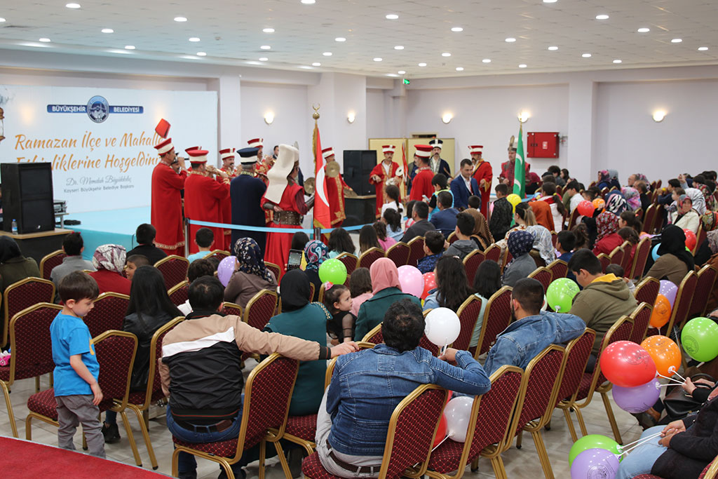 Büyükşehir Belediyesi, Kayseri Dünya Ticaret Merkezi’nde oluşturduğu Ramazan etkinliklerinin yanı sıra kent merkezine uzak mahalleler ve ilçelerde de Ramazan’a özel etkinlikler gerçekleştiriyor. Kayseri Büyükşehir Belediyesi, Ramazan’ın ruhuna uygun etkinliklerle Kayseri’nin dört bir tarafında Ramazan gecelerinin birlik beraberlik içerisinde geçirilmesine vesile oluyor. Büyükşehir Belediyesi’nin Kayseri Dünya Ticaret Merkezi’nde oluşturduğu Ramazan etkinlikleri büyük bir ilgiyle devam ederken, şehir merkezine uzak mahalleler ve ilçelere de birbirinden güzel etkinlikler taşınıyor. Ramazan etkinlikler, bugüne kadar Hacılar, Develi, İncesu ve Yeşilhisar ilçeleriyle Talas-Anayurt, Eskişehir Bağları, Ağırnas, Mimsin, İldem, TOKİ, Erkilet, Yenişehir, Belsin ve Yemliha mahallelerinde yapıldı. Ramazan etkinlikleri Yahyalı, Felahiye, Özvatan, Sarıoğlan, Tomarza, Bünyan, Akkışla, Pınarbaşı, Sarız ve Develi ilçeleriyle devam edecek. Etkinlikler, ilçelere Büyükşehir Belediyesi tarafından yapılan sosyal yaşam merkezlerinde gerçekleştiriliyor. Ramazan etkinlikleri çerçevesinde Büyükşehir Belediyesi Mehter Takımı konser veriyor, ilahiler seslendiriliyor, Karagöz ve Hacivat sahne alıyor, orta oyunu gösterisi sunuluyor ve çocuklara yönelik çeşitli yarışmalar yapılıyor. Büyükşehir Belediyesi’nin Ramazan etkinlikleri gittiği her mahalle veya ilçede büyük ilgi görüyor.