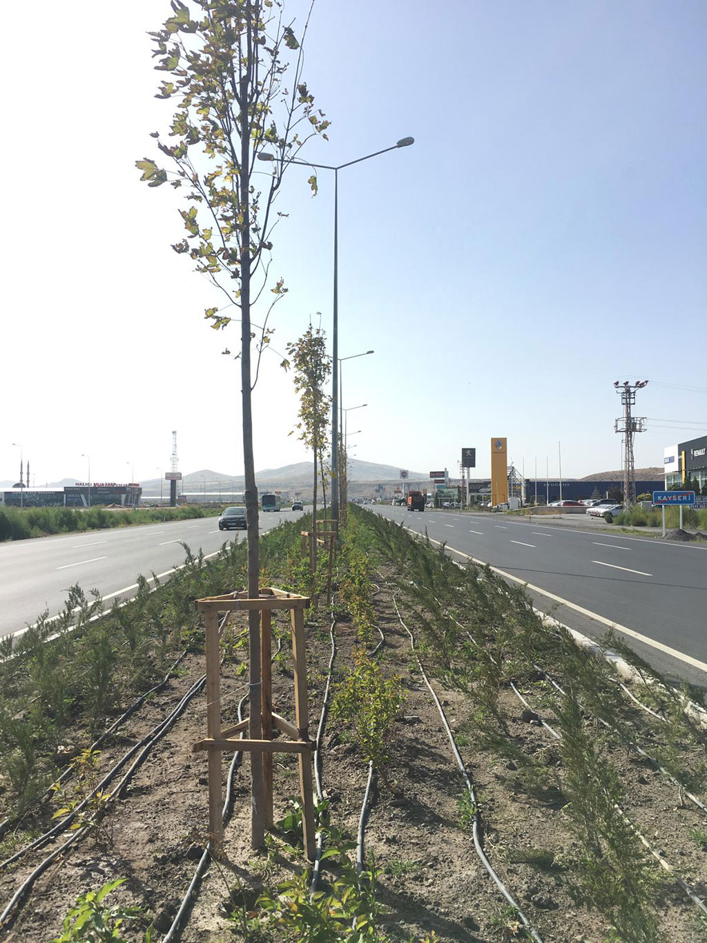 Kayseri Büyükşehir Belediye Başkanı Dr. Memduh Büyükkılıç, şehrin batı girişinin yemyeşil bir görünüm kazanması amacıyla ekolojik dönüşümü dikkate alarak Anbar ile Boğazköprü arasına 62 bin adet fidan dikildiğini belirtti. Başkan Büyükkılıç, yaptığı açıklamada, yeşile ve ağaçlandırmaya büyük önem verdiklerini ve şehrin pek çok bölgesinde buna yönelik çalışmalar yürüttüklerini söyledi. Park Bahçeler ve Ağaçlandırma Daire Başkanlığı’nın su tasarrufunu da dikkate alarak ekolojik dönüşüm kapsamında park ve bahçeler ile kavşaklarda çalışma gerçekleştirdiğini kaydeden Başkan Büyükkılıç, “Anbar-Boğazköprü yolu üzerinde 45 bin 500 ardıç, 15 bin 200 süs kızılcığı, 354 çınar yapraklı akça diktik. Bu bölgede toplamda 61 bin 754 bitkiyi toprakla buluşturan Büyükşehir Belediyesi yürütülen çalışmalar ile hem Kayseri’deki yeşil alan miktarını arttırıyor hem de dikilen bitki türü seçimlerinde yapılan değişikliklerle tüm bu çalışmaları çevreci ve tasarruflu bir şekilde yürütüyor” dedi. Kayseri’deki yeşil alan miktarı ile ilgili bilgilerde veren Başkan Büyükkılıç, şöyle konuştu: “Kayseri’de yaptığımız çalışmalarla kişi başına düşen yeşil alan miktarı 15 metrekareye kadar ulaştı. Her ne kadar bu rakamlar dünya standartlarının üzerinde olsa da bize yeterli gelmiyor. Yeşil alanı artırmak ve daha yaşanabilir bir Kayseri imar etmek için çalışıyoruz. Kayseri’nin ve Türkiye’nin en büyük millet bahçelerinden olacak olan Recep Tayyip Erdoğan Millet Bahçesi ve Keykubat Millet Bahçesi gibi büyük projeler ile çok daha yeşil bir Kayseri’yi hep birlikte göreceğiz”