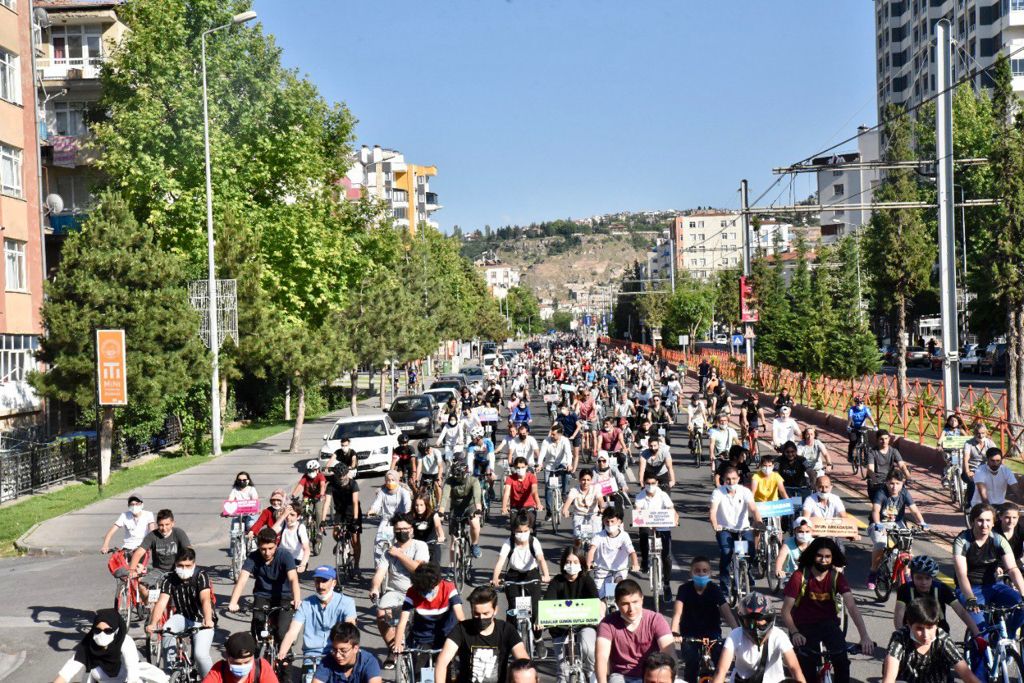 ‘kahraman babam ile pedallıyorum’ yazılı dövizler de dikkat çekerken, bisiklet