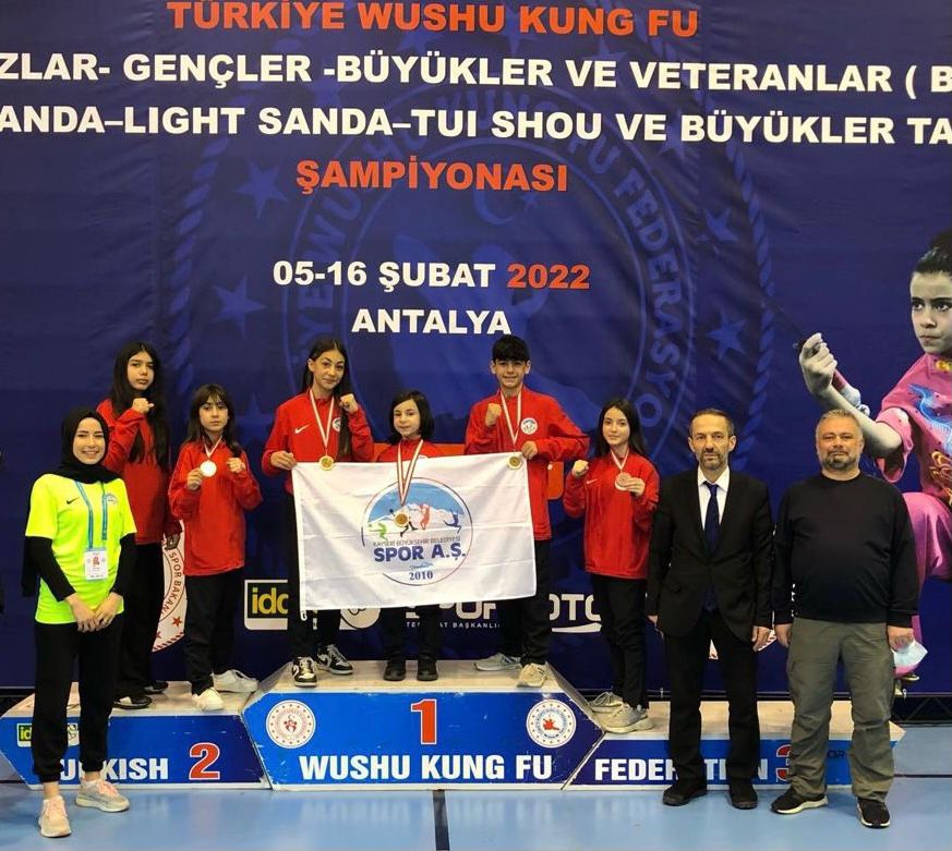 sporcuları, Antalya’daki Wushu Türkiye Şampiyonası’nda 6 altın, 1 gümüş, 4