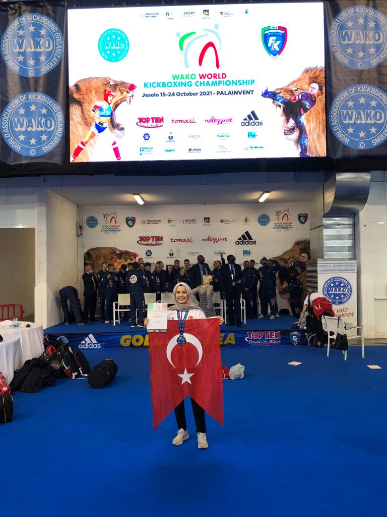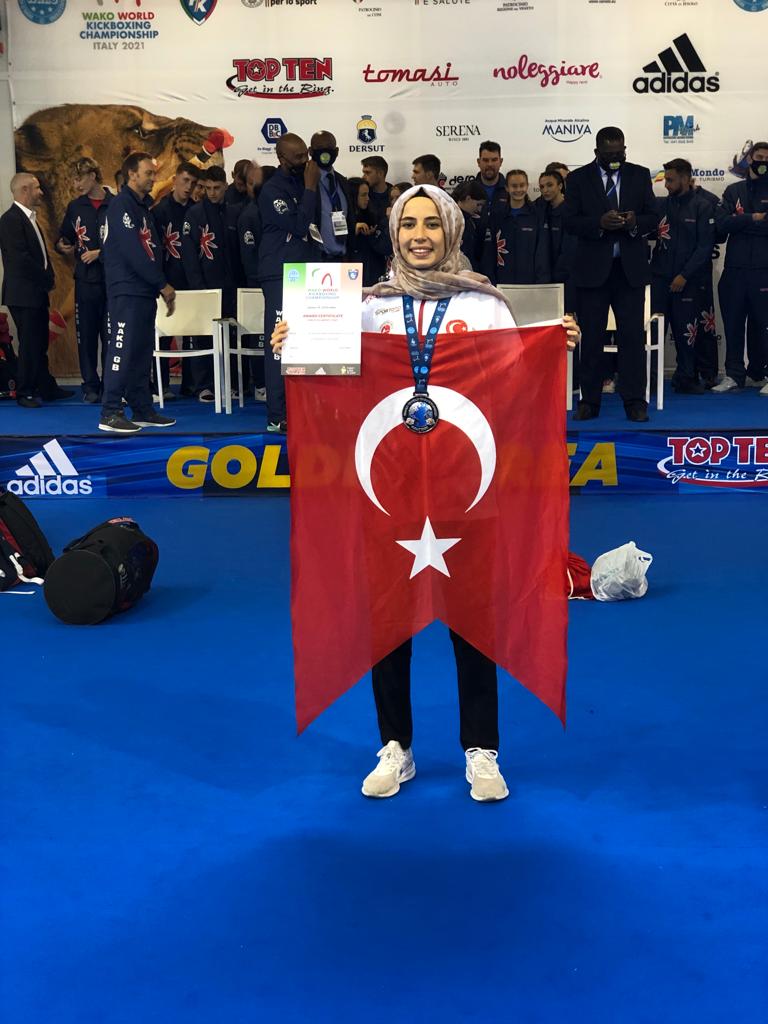 Finalde Rus rakibi ile karşılaşan ve büyük mücadele örneği gösteren Hayriye, dünya ikincisi olarak gümüş madalya kazandı. Birbirinden güçlü rakiplerini yenerek finale kalan ve finalde Dünya ikincisi olan Hayriye, İtalya’da Türk Bayrağı ile gururla poz verdi.