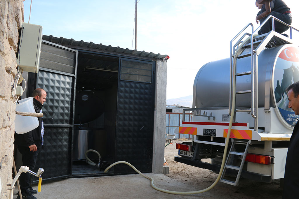 Büyükşehir Belediyesi, çiftçilerin kullanımına sunduğu çiğ süt soğutma tanklarıyla süt üreticisinin gelirini artırdı. Büyükşehir Belediye Başkanı Mustafa Çelik, süt üreticileri için toplam 140 ton kapasiteli 206 adet çiğ süt soğutma tankı alarak hayvancılığa Türkiye’de örneği olmayan bir destek sağladıklarını belirtti. Büyükşehir Belediyesi 2015 yılında tarım makineleriyle çiftçilere sağladığı desteği 2016 yılında çiğ süt soğutma tanklarıyla sürdürdü. Çiftçilerin kullanımı için alınan 206 adet çiğ süt soğutma tankı Eylül 2016’da yapılan törenle Damızlık Sığır Yetiştiricileri Birliği kanalıyla çiftçilerin kullanımına sunuldu. Kayseri’nin tüm ilçelerinde 14 aydır Büyükşehir Belediyesi’nin almış olduğu çiğ süt soğutma tankları kullanılıyor. Develi’nin Sarıca Mahallesi’nde besicilik yapan Turan Çatak da binlerce üretici gibi ürettiği sütü Büyükşehir Belediyesi’nin çiğ süt soğutma tanklarına aktarıyor. 25’i sağılır 50 hayvanı bulunan Turan Çatak, “Büyükşehir Belediyesi’nin sağladığı imkanlarla sütümüz otomatik sağılıyor ve el değmeden tanklara atılıyor. Hava almadığı için de tertemiz bir süt oluyor. Kalite oranı çok yüksek. Bundan dolayı bizleri buralarda unutmadığı ve desteklediği için Büyükşehir Belediye Başkanımıza çok teşekkür ediyoruz” dedi. Develi’nin Karacaören Mahallesi’nde besicilik yapan Sakip Kaşoğlu da 20 hayvanı sağarak günlük 300-350 litre arasında süt aldığını ve bu sütleri Büyükşehir Belediyesi’nin sağladığı imkanla anında soğutma tanklarına boşalttıklarını söyledi. Daha önce böyle bir imkanı olmadığını ifade eden Kaşoğlu, sağlanan imkanla birlikte para kazanmaya başladığını kaydetti. Büyükşehir Belediyesi’nin aldığı çiğ süt soğutma tankları hayvancılığa cansuyu kapsamında soğuk süt zinciri projesiyle çiftçilerin hizmetine sunuldu. 2015 yılında alınan tarım makinelerini ilçelerdeki ziraat odaları vasıtasıyla çiftçilere kullandıran Büyükşehir Belediyesi, süt soğutma tankları için de Damızlık Sığır Yetiştiricileri Birliği ile hareket etti. Damızlık Sığır Yetiştiricileri Birliği Yöneticisi Zekeriya Çoban, Büyükşehir Belediyesi’nin vermiş olduğu imkanın önemini vurgulayarak böyle bir projenin hayata geçirilmesini sağlayan Büyükşehir Belediye Başkanı Mustafa Çelik’e teşekkür etti. SOĞUTMA TANKLARIYLA SÜT DESTEĞİ DE ARTTI Büyükşehir Belediye Başkanı Mustafa Çelik, insanları doğdukları yerde doyurmak ve mutlu oldukları yerde yaşatmak için Türkiye’de örneği olmayan projelerle kırsalda yaşayanların gelirini artırmaya çalıştıklarını söyledi. 2015 yılında 53 tarım makinesini alarak tarımın hizmetine sunduklarını, 2016 yılında da 206 çiğ süt soğutma tankı ile hayvancılığa destek verdiklerini dile getiren Başkan Çelik, “139 adet 500 litrelik, 59 adet 1 tonluk ve 8 adet 1,5 tonluk olmak üzere toplam 140 ton kapasiteli 206 adet çiğ süt tankını Damızlık Sığır Yetiştiricileri Birliği kanalıyla üreticilerimizin kullanımına sunduk. Bilindiği üzere sütün içinde bulunan mikroorganizmalar sağımdan sonraki iki saat içinde soğutulmadığı takdirde çoğalarak sütün kalitesini bozuyor. Çiğ sütün doğal halini koruyabilmesi için sütü sağar sağmaz hızlı bir şekilde soğutmak gerekiyor. Bu işlem hem sütün kalitesini artırıyor hem de süt üreticisinin üretimlerini değerlendirebilmelerine imkan veriyor. Gıda Tarım ve Hayvancılık Bakanlığı’nın soğuk sütle birlikte desteği de artıyor. Böylece üreticilerimiz daha çok kazanıyor ve kazancıyla da üretim alanını büyütme imkanı yakalıyor” diye konuştu.