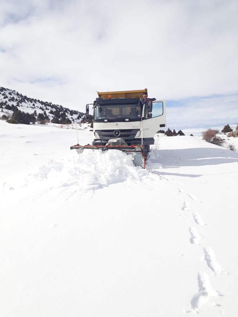 Daire Başkanlığı ekipleri, yoğun tipi ve kar yağışı nedeniyle kapanan Akkışla