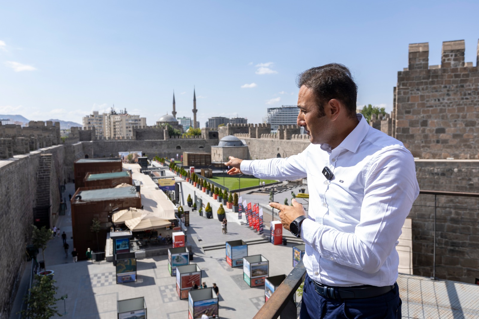 Büyükşehir Belediyesi Turizm Şube Müdürü Gündüz, Kayseri Kalesi’nin batı cephesinde dijital bir uygulamaları olduğunu vurguladığı konuşmasında, “Geldiğinizde Anadolu’nun tarihi çağlar boyunca yaşamış olduğu uygarlıkların tamamının kıyafetlerini dijital olarak giyebiliyorsunuz. Çok büyük bir ekran. Kesinlikle tavsiye ediyorum. Müze ve müzelerimizin tamamı ücretsiz. Hemen müzeye inerken birçok sergi sizleri bekliyor. Bunlardan ‘Gökyüzünden Türkiye.’ Türkiye’nin değişik yerlerinden değişik görüntüler. Ve hemen ‘Seyyah Anadolu Medeniyetleri’ dediğimiz dijital sergi. Ve ‘Türkiye’nin Ustaları Belgesel Gösterimi’. ‘Akkase Ebru Sergisi’ ve tabi baktığımızda bunlara ek olarak Peyami Gürel’in en güzel çalışmaları yer alacak Arkeoloji Müzesi’nde. Pazartesi günü ‘Tespih Atölyesi’ olacak Hunat Kültür Merkezi’nde. Dijital Hareketli Minyatür Uygulamaları, Yaşayan Miras Bünyan Halıları ki geçmişi dokumak geleceğe dokunmak gibi güzel bir başlıkla geliyor. Bunlara ek olarak ‘Hüzün Çiçekleri’, ‘Değerli Taşlardan Heykel Çalışmaları’, Türkiye’nin Minyatürleri (Kayseri), ‘Geçmişten Günümüze Kayseri’de Ticaret’ Arkeoloji Müzesi’nin içerisinde olacak. Ayrıca Kültürel Miraslar ve Simülasyon Deneyim Atölyesi (Kayseri) ve Yaşayan Miras Çalıştayı ve son gün Arkeoloji Müzesi’nde Prof. Dr. Fikri Kulakoğlu eşlik edecek sizlere ve Kültepe Kaniş-Karum kazılarını anlatacak” diye konuştu.