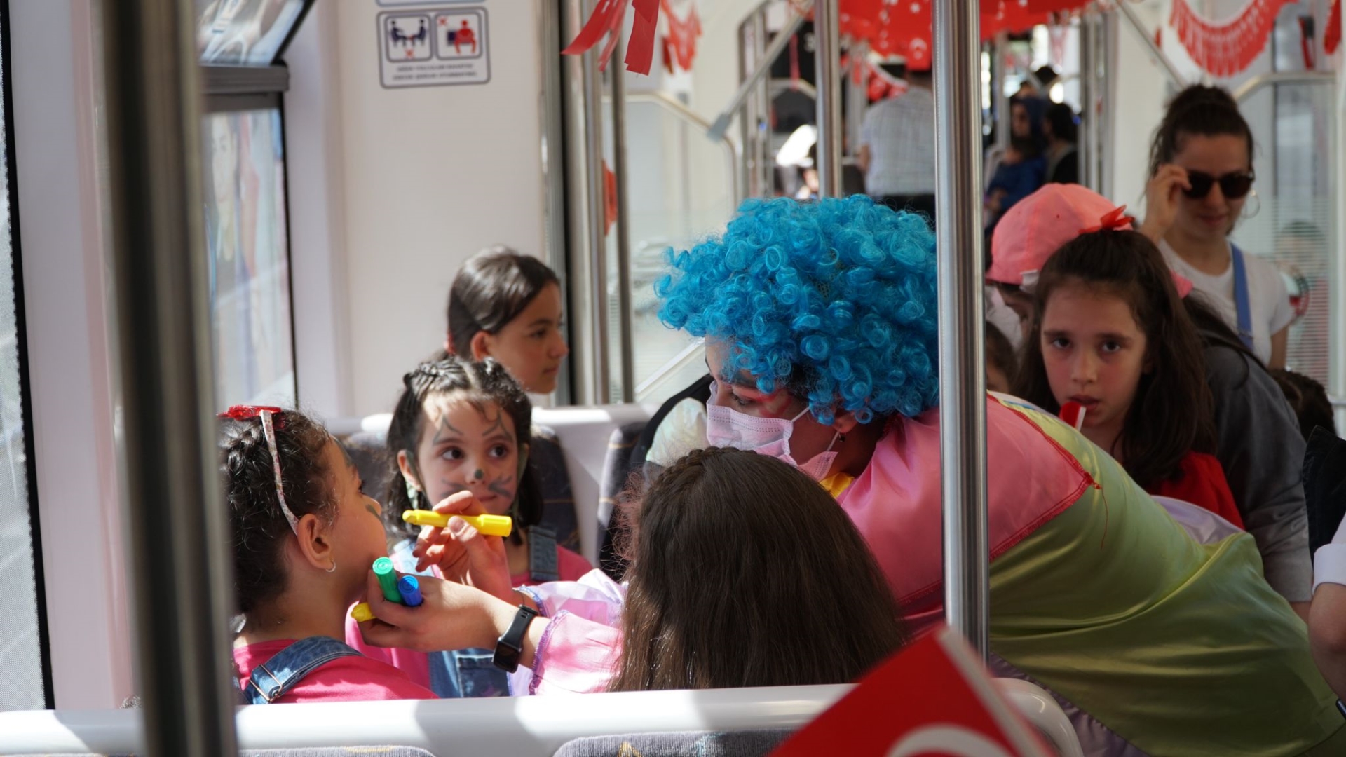 ücretsiz binen çocukları palyaçolar karşıladı.