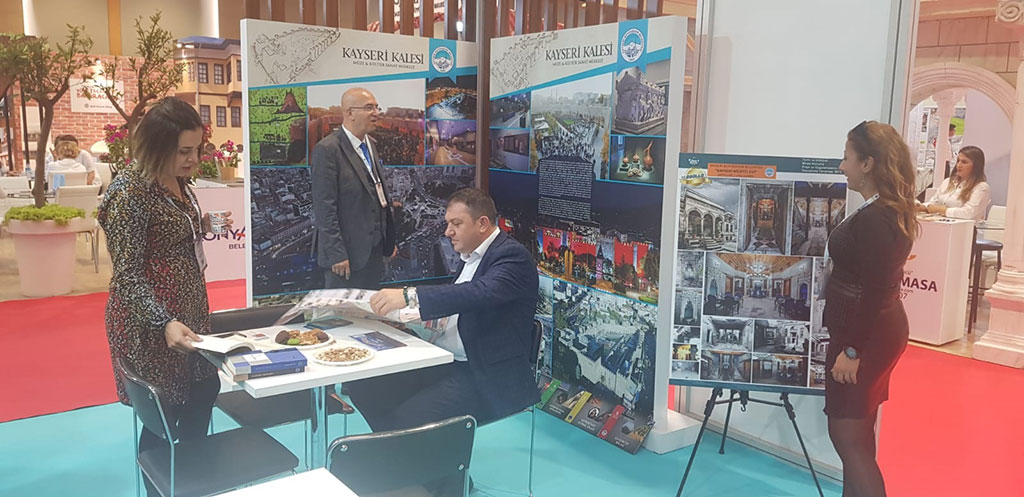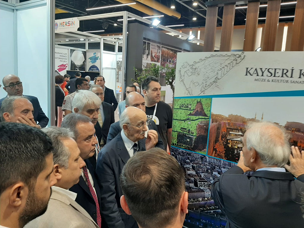 Antalya’da açılan YAPEX Restorasyon Koruma ve Kültür Mirası Fuarı’na Kayseri Büyükşehir Belediyesi de katıldı. Tarihi Kayseri Kalesi Kültür Sanat Merkezi, Koramaz Vadisi gibi değerlerimizin tanıtıldığı Kayseri standına büyük ilgi gösterildi. Tarihi Kentler Birliği ve Çekül Vakfı tarafından 6-8 Kasım tarihleri arasında düzenlenen ve bu yıl 9’uncusu yapılan YAPEX Kültür Mirası ve Koruma Fuarı Antalya’da gerçekleştiriliyor. Tarihi Kentler Birliği’ne üye belediyeler ve restorasyon firmalarının katıldığı fuarda Kayseri Büyükşehir Belediyesi de stant açtı. Stantta özelikle Tarihi Kayseri Kalesi Kültür Sanat Merkezi ve Koramaz Vadisi gibi değerlerimizle ilgili ziyaretçilere açıklamalarda bulunuldu. Standı Çekül Vakfı Başkanı Prof. Dr. Metin Sözen de gezdi. Talas Belediye Başkanı Mustafa Yalçın ile birlikte Kayseri standını ziyaret eden Metin Sözen’e Büyükşehir Belediyesi Kültür Varlıkları Daire Başkanı Gürcan Senem tarafından Tarihi Kayseri Kalesi’nde yapılan çalışmalarla ilgili bilgi verildi.