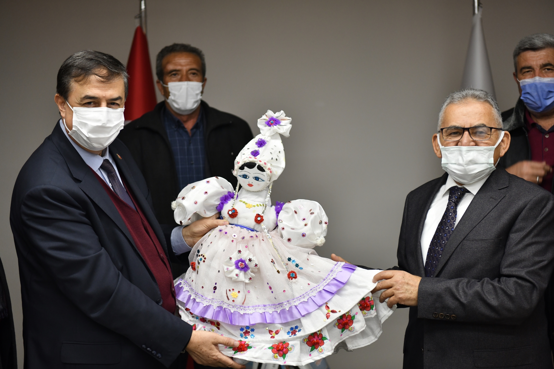 Ziyaretin sonunda Yeşilhisar Belediye Başkanı Halit Taşyapan,  Başkan Büyükkılıç’a Yeşilhisar’ın meşhur Soğanlı bebeğini hediye etti.