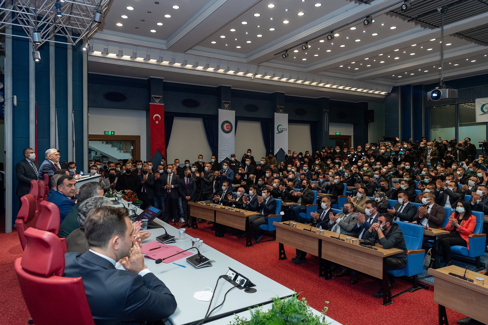 Başkan Büyükkılıç, alkışlarla salona girerken, Öz Taşıma İş