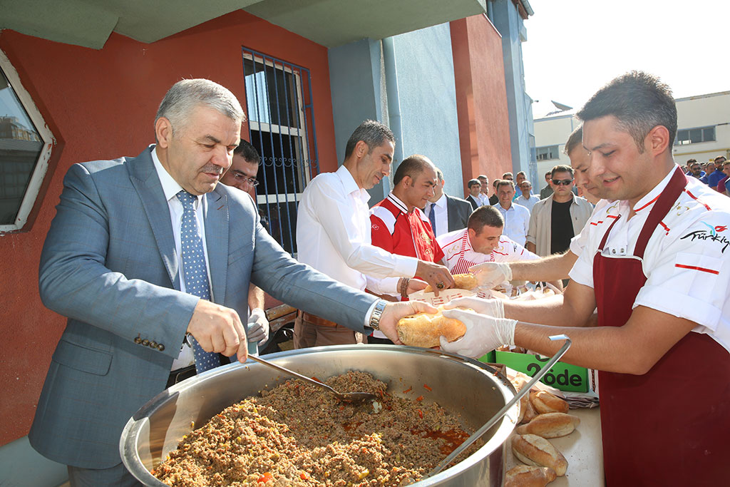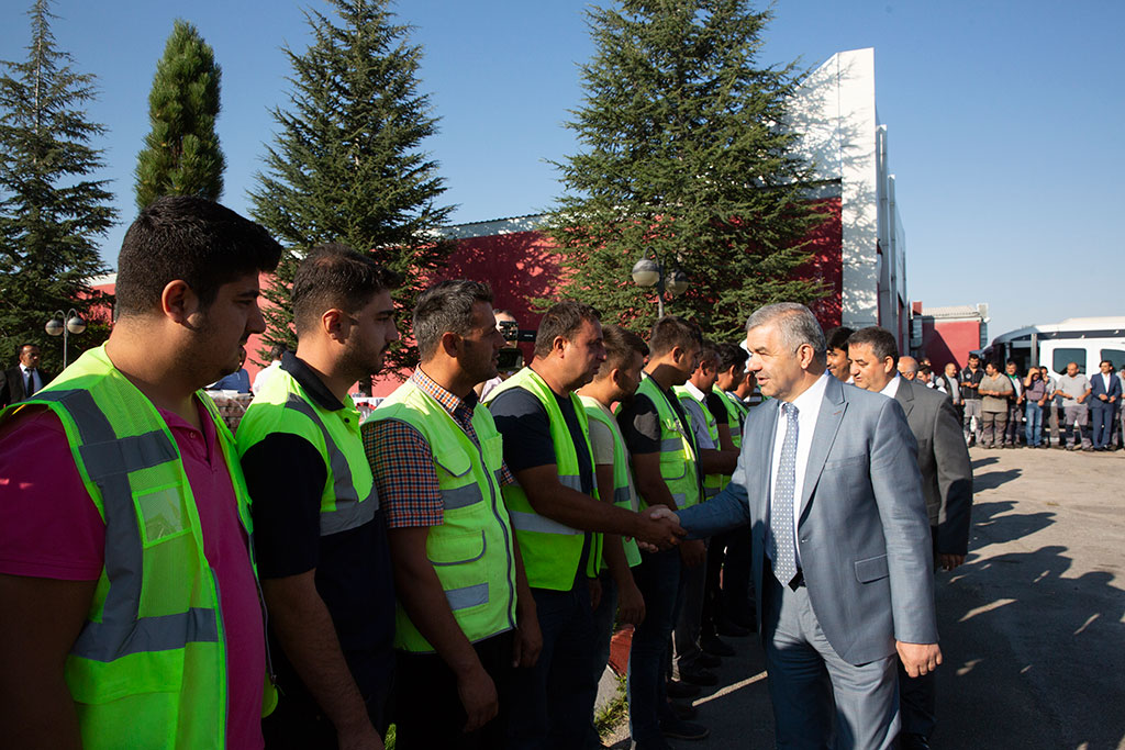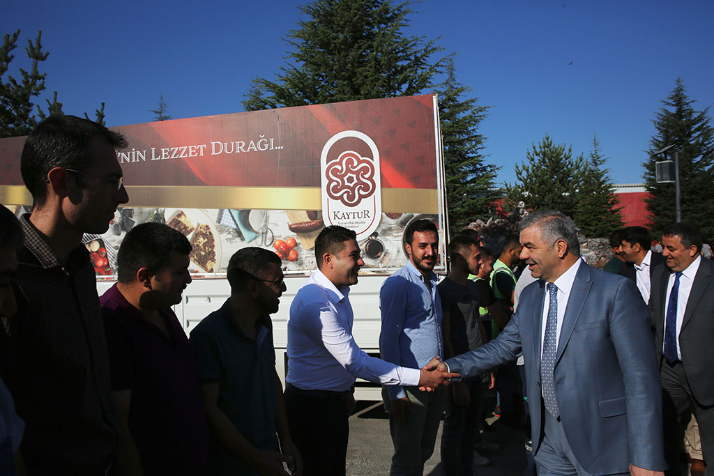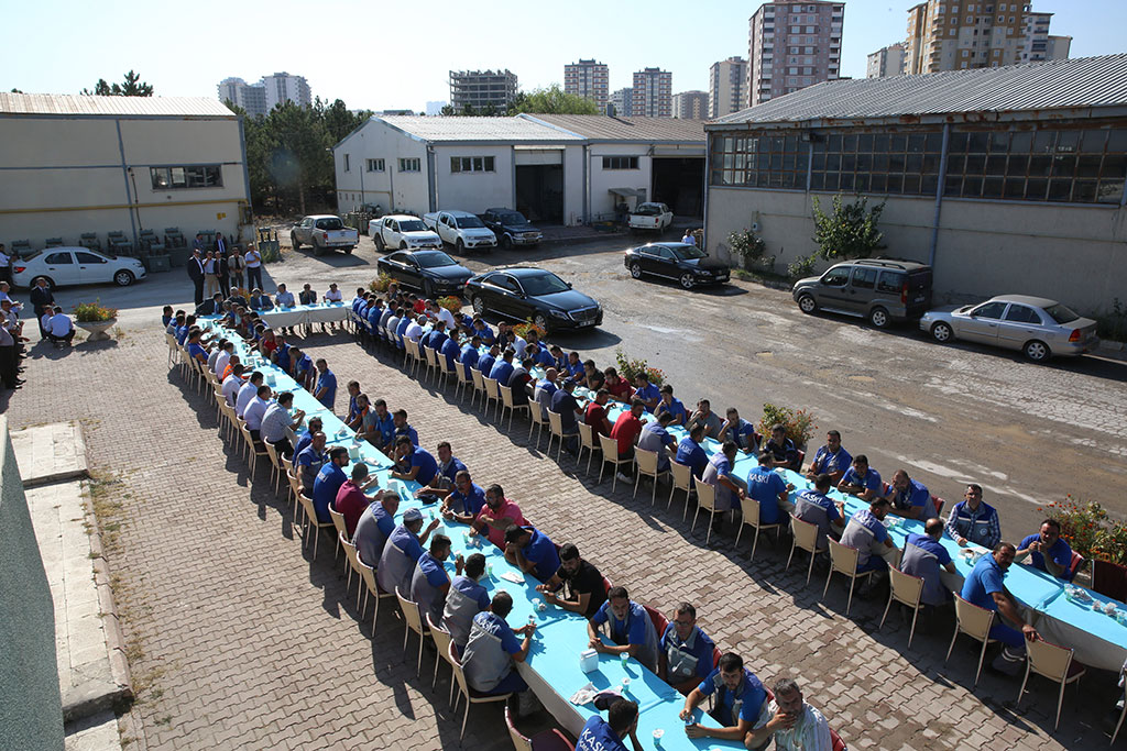 Büyükşehir Belediye Başkanı Mustafa Çelik, bayram sonrası ilk mesai gününde her bayram olduğu gibi mesai arkadaşlarıyla bayramlaştı. Başkan Çelik, cennet vatanımızda her bayramın huzurlu geçmesi temennisinde bulundu. Büyükşehir Belediye Başkanı Mustafa Çelik, bayram tatili sonrası mesai saatinin başlamasıyla birlikte öncelikle Makine İkmal Bakım ve Onarım Daire Başkanlığı Karpuzatan Atölyesi'ni ziyaret etti. Burada Makine İkmal, Fen İşleri ve Park Bahçeler Daire Başkanlıklarına bağlı personelle bir araya gelen Başkan Çelik, belediye bürokratları ve tüm personelle tek tek bayramlaştı. Başkan Mustafa Çelik, Kurban Bayramı sonrası bayramlaşma geleneğini devam ettirdi ve personele et ikramında bulundu. Burada yaptığı konuşmada tüm çalışanların Kurban Bayramı'nı tebrik eden Başkan Mustafa Çelik, cennet vatanımızda huzur içinde bir bayram geçirdiğimizi belirtti ve “Rabbim nice böyle bayramlara erişmeyi nasip etsin” diye konuştu. Başkan Mustafa Çelik, daha sonra çalışanlarla birlikte kıyma sote yedi ve onlarla sohbet etti. KASKİ’NİN GERMİR TESİSLERİNE BAYRAM ZİYARETİ Büyükşehir Belediye Başkanı Mustafa Çelik, Karpuzatan Atölyesi’nin ardından KASKİ’nin Germir’deki tesislerine geçti. Germir Su Deposu Tesisleri önünde KASKİ yöneticileri ve çalışanlarıyla bayramlaşan Başkan Mustafa Çelik, burada da çalışanlara kıyma sote ikramında bulundu. ÜÇÜNCÜ BAYRAMLAŞMA BÜYÜKŞEHİR'DE Bayram tatilinin ardından ilk mesai gününde Büyükşehir Belediyesi hizmet binasında da bir bayramlaşma gerçekleştirildi. Başkanlık girişinde yapılan bayramlaşmaya Büyükşehir Belediye Başkanı Mustafa Çelik de katıldı. Başkan Çelik, tüm personelle tek tek bayramlaşarak huzurlu ve mutlu bayramlar temennisinde bulundu.