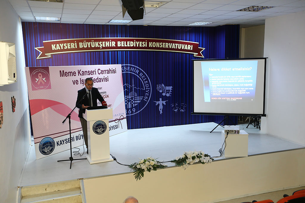 Büyükşehir Belediyesi sağlık seminerlerine devam ediyor. Sağlık seminerlerinde bu hafta Meme Kanseri Cerrahisi ve Işın Tedavisi konusu ele alındı. Büyükşehir Belediyesi kültür sanat etkinlikleri çerçevesinde düzenlenen sağlık semineri, Büyükşehir Belediyesi Konservatuvarı Seminer Salonu’nda yapıldı. Seminere Genel Cerrahi Uzmanı Prof. Dr. Can Küçük ve Radyoterapi Uzmanı Serdar Soyuer katıldı. Prof. Dr. Can Küçük, kanser türlerinin son zamanlarda artış gösterdiğini fakat meme kanserinin artışının daha fazla olduğunu belirtti. Kanserin nasıl oluştuğu hakkında bilgi veren Küçük, bazı risk faktörlerinin meme kanseri oluşmasında etkili olduğunu ifade etti. Erken tanının çok önemli olduğunu da vurgulayan Prof. Dr. Can Küçük, Dünya Sağlık Örgütünün yaptığı araştırmaya göre 20-40 yaş arası kadınların 3 yılda bir doktor kontrolüne gitmesi gerektiğini, 40 yaşa gelindiğinde 2 yılda bir, 50 yaşı geçtikten sonra ise her yıl doktor kontrolünden geçmelerinin önemli olduğunu kaydetti.