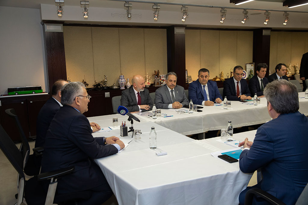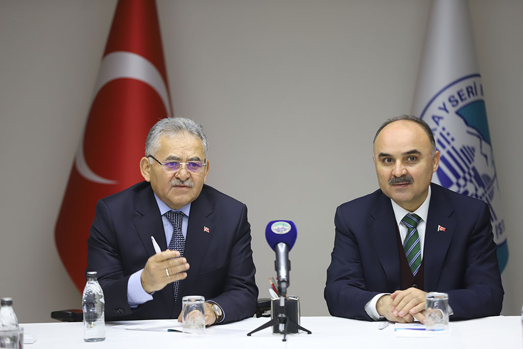 Kayseri Büyükşehir Belediyesi’nde vakıflar ve turizmle ilgili bir toplantı gerçekleştirildi. Toplantıya Vali Şehmus Günaydın ile Büyükşehir Belediye Başkanı Dr. Memduh Büyükkılıç da katıldı. Büyükşehir Belediyesi’nde gerçekleştirilen vakıflar ve turizm zirvesine Vali Şehmus Günaydın ve Büyükşehir Belediye Başkanı Dr. Memduh Büyükkılıç’ın yanı sıra Melikgazi Belediye Başkanı Mustafa Palancıoğlu, Kocasinan Belediye Başkanı Ahmet Çolakbayrakdar, Talas Belediye Başkanı Mustafa Yalçın, Hacılar Belediye Başkanı Bilal Özdoğan, İncesu Belediye Başkanı Mustafa İlmek, Vakıflar Bölge Müdürü Murat Seçilir, İl Kültür Turizm Müdürü Şükrü Dursun ve ilgili bürokratlar katıldı. Büyükşehir Belediye Başkanı Dr. Memduh Büyükkılıç, Şehir Kütüphanesi’nin açılışı için vakıfların da bağlı bulunduğu Kültür ve Turizm Bakan Yardımcısı Ahmet Misbah Demircan’ın ilimize geleceğini hatırlatarak bu ziyaret öncesinde ilgili bakanlığın bürokratları ve ilçe belediye başkanlarının da katılımıyla bir toplantı gerçekleştirdiklerini söyledi. Vali Şehmus Günaydın da istişarenin önemini vurgulayarak, “İstişarede hep hayır vardır. Bu tür toplantılarla yaptığımız istişarelerde ilimiz açışından daha faydalı sonuçlar alıyoruz. Yapacağımız toplantıda vakıflar ve turizm konularında hangi noktada olduğumuzu ve neler talep edebileceğimiz göreceğiz” dedi.