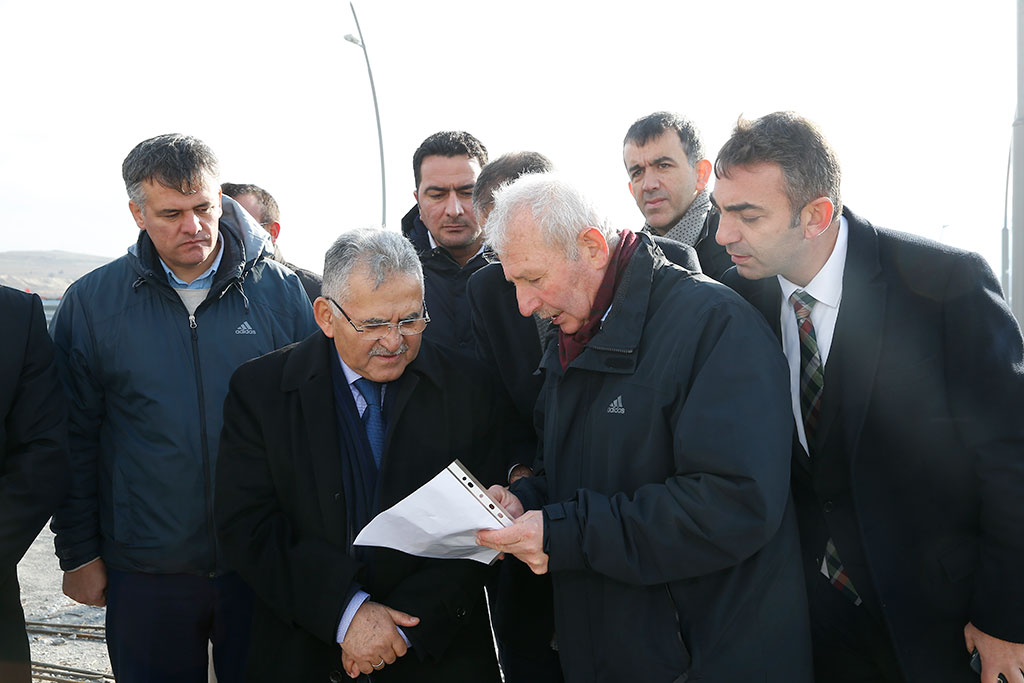 ?Kayseri Büyükşehir Belediyesi olumsuz hava şartlarına rağmen yatırımlarına hız kesmeden devam ediyor. Şehir Hastanesi önündeki katlı kavşağa eklenen dördüncü kolun yapım çalışmalarını Büyükşehir Belediye Başkanı Dr. Memduh Büyükkılıç ziyaret etti.