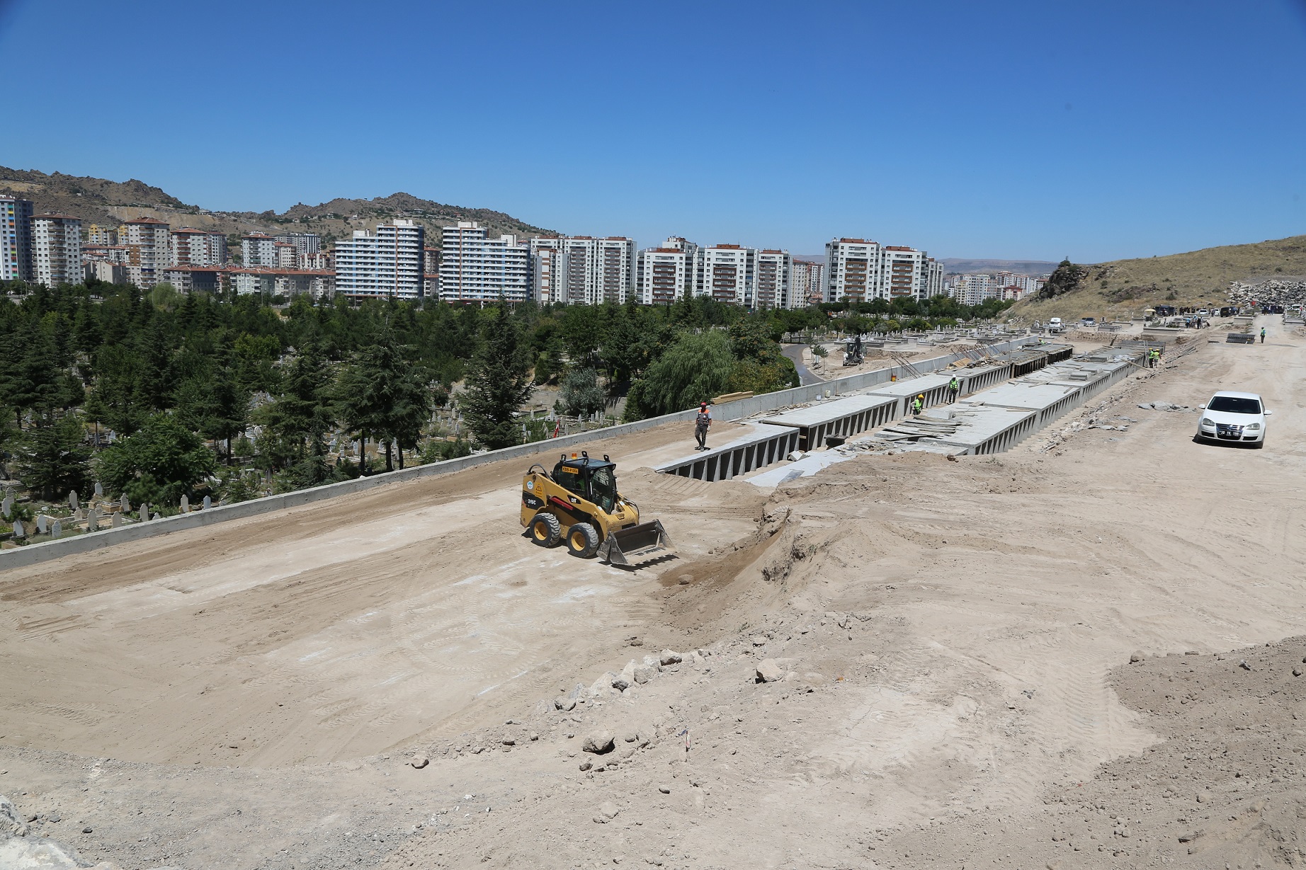 hızla devam eden yeni mezarlık inşaatlarını yerinde inceledi.