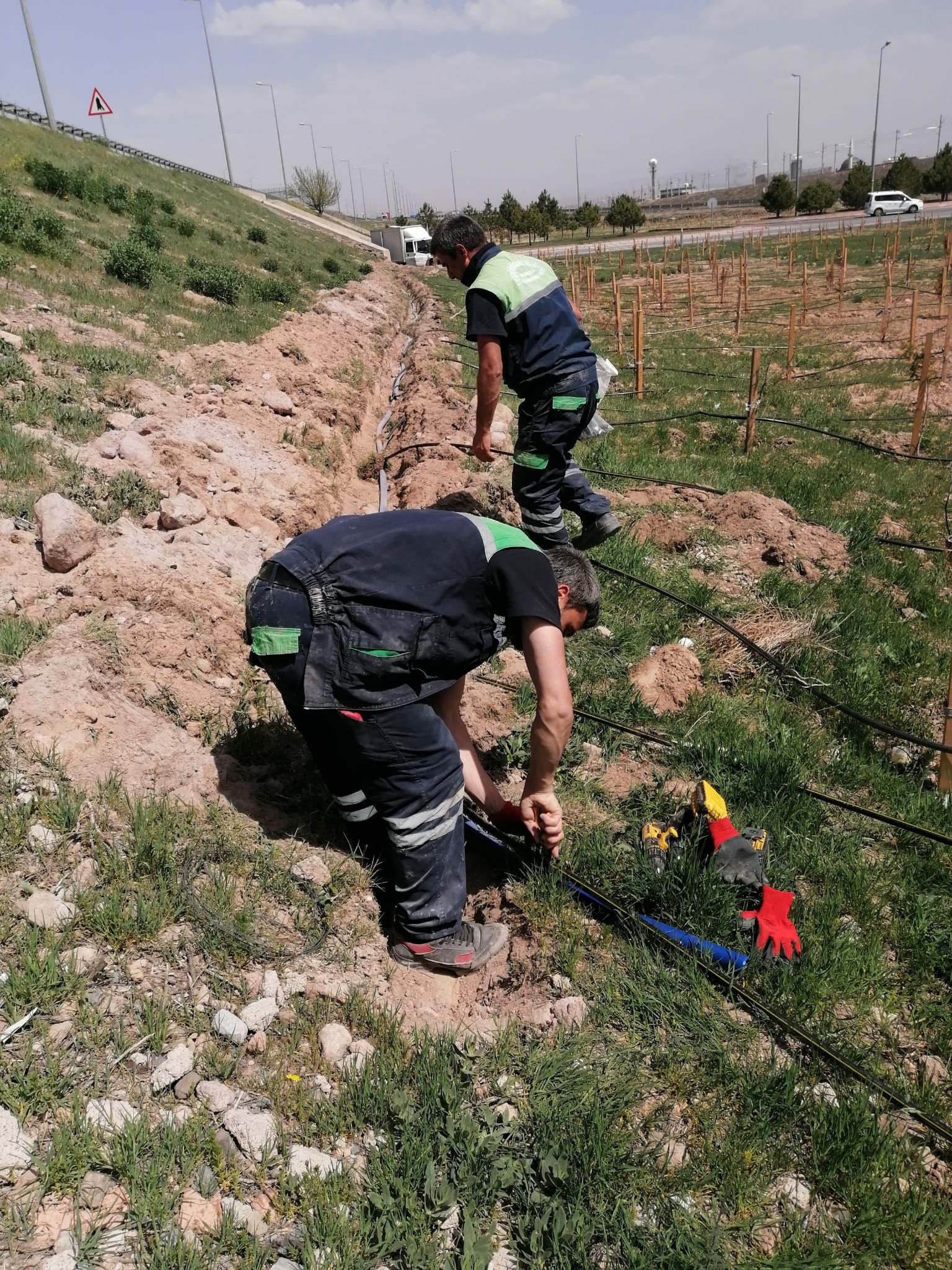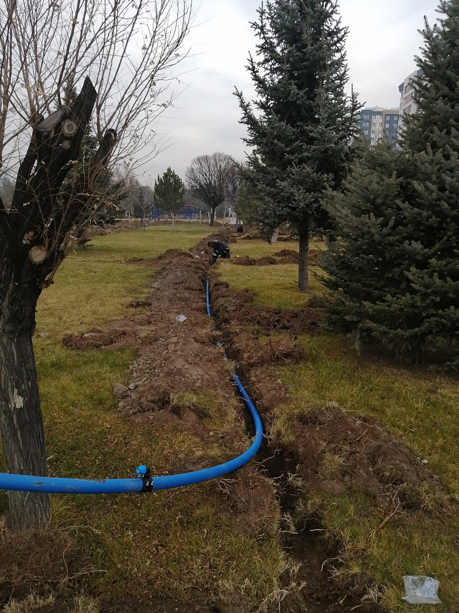 sulama sistemi kuruldu. Kayseri’deki çim ve ağaçlandırılan alanlar içerisinde