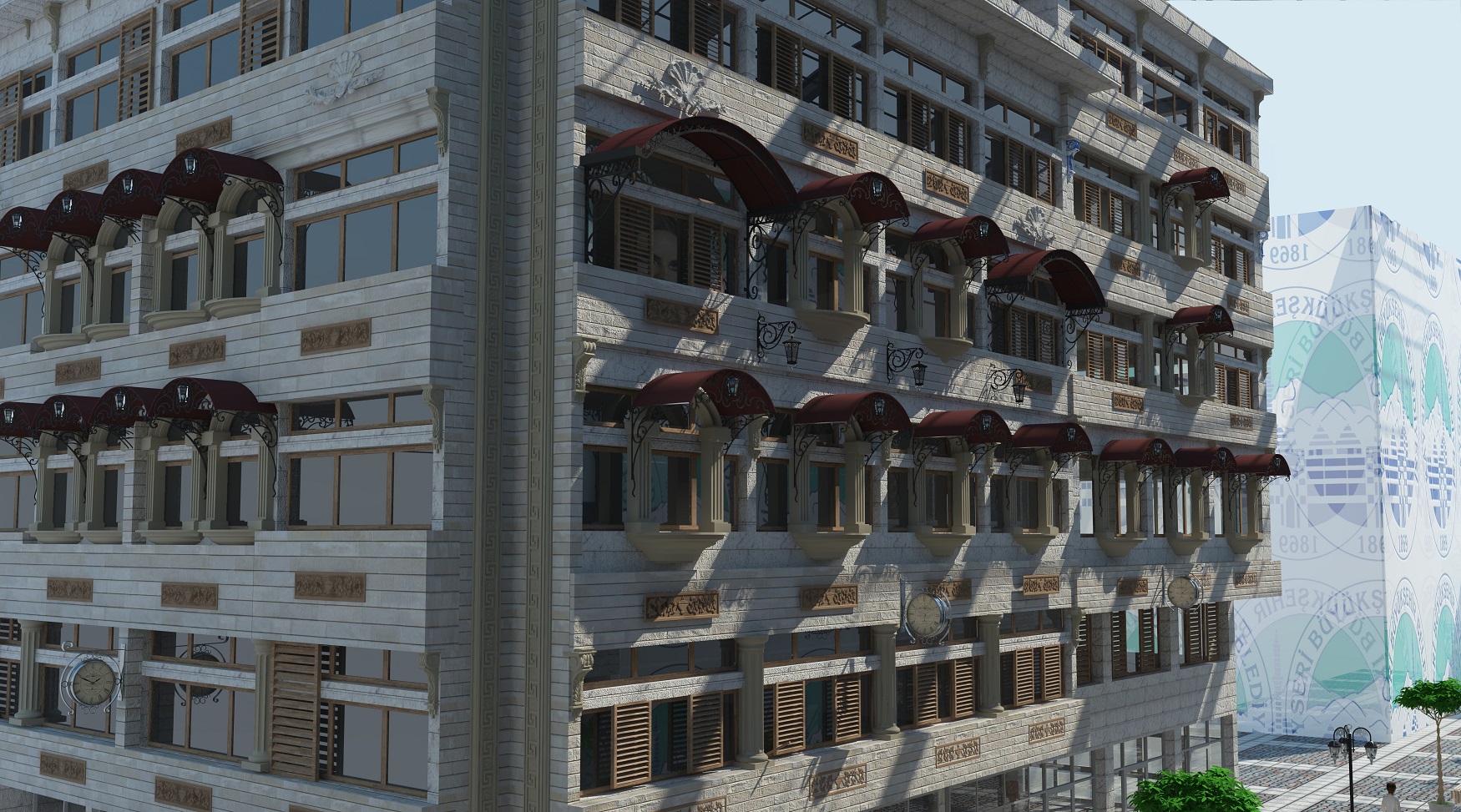 Çarşı içerisinde bulunan her bir binanın dikkatle