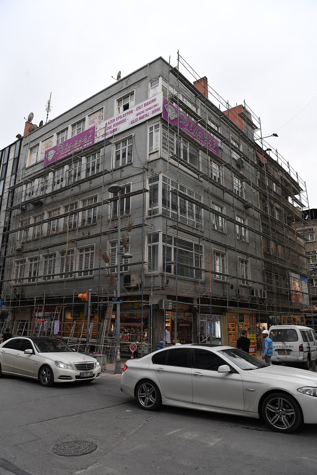 Çarşı cephe ve zemin düzenlemesi çalışmalarının ilk etabında