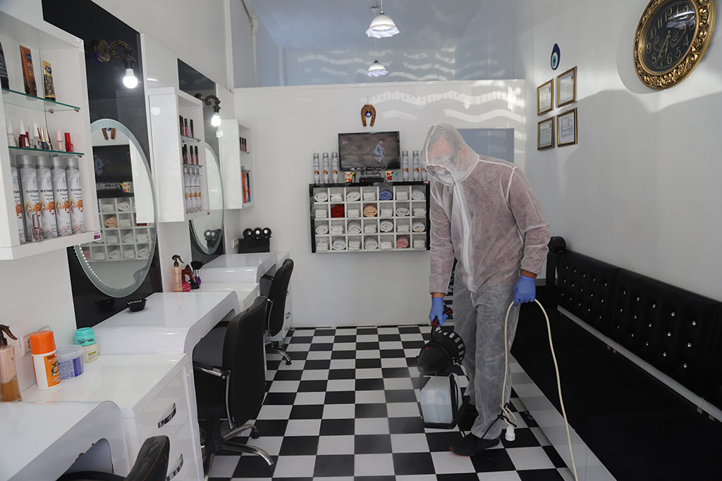 Farklı projelerle her zaman esnaf ve sanatkara destek veren Kayseri Büyükşehir Belediyesi,Covid-19 ile mücadele sürecinde de esnafın yanında yer almaya devam ediyor. Başkan Büyükkılıç’ın talimatıyla 11 Mayıs Pazartesi gününden itibaren faaliyetlerine başlayacak olan berber ve kuaförlerde dezenfekte çalışmaları başlatıldı. Çalışmalarda 1600 işyeri dezenfekte edilecek. Kayseri Büyükşehir Belediyesi Su ve Kanalizasyon İdaresi (KASKİ) Genel Müdürlüğü bünyesindeki dezenfekte ekipleri 11 Mayıs’ta açılacak olan berber ve kuaförlere yönelik geniş çaplı dezenfekte çalışması başlattı. Esnaflar ve bu işyerlerinden hizmet alacak olan vatandaşların sağlığı için yapılan çalışmalar 1600 iş yerini kapsıyor. 10 Mayıs Pazar gününe kadar sürecek olan dezenfekte çalışmalarında tüm işyerlerinin dezenfeksiyonu gerçekleştirilecek. Esnafa verilen bu destek nedeniyle Büyükşehir Belediye Başkanı Dr. Memduh Büyükkılıç’a teşekkür eden Berberler ve Kuaförler Odası Başkanı Rıfat Alparslan dezenfekte çalışmalarının Kocasinan ve Melikgazi bölgesinde başladığını ve peyderpey 1600’e yakın işyerinin ücretsiz olarak dezenfekte edileceğini söyledi. Berber ve kuaförler koronavirüs nedeniyle kapalı olduğu süreçte Büyükşehir Belediyesi’nden destek gördüklerini ifade eden Alparslan, “Kapalı olduğumuz dönemde de iaşe yardımında bulundular. Bu destekler için çok teşekkür ediyorum. 11 Mayıs Pazartesi gününe kadar mesajla esnafımızı bilgilendirerek tüm işyerlerinin dezenfektesini yaptıracağız. Pazartesi günü de iş yerlerimizi açacağız” diye konuştu.