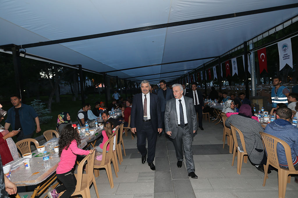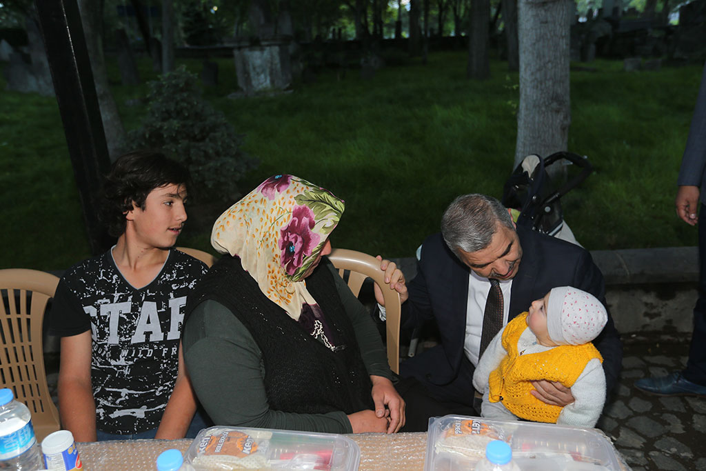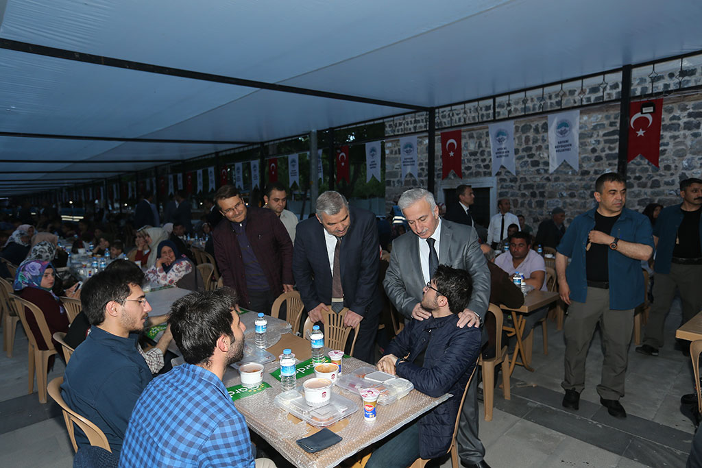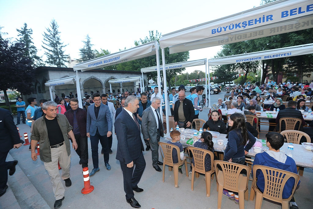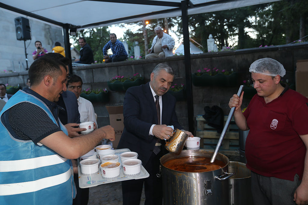 Büyükşehir Belediyesi, Seyyid Burhaneddin Hz. Türbesi’nde iftar programlarına başladı. Ramazan ayının ilk iftarını Büyükşehir Belediye Başkanı Mustafa Çelik de Vali Süleyman Kamçı ile birlikte Seyyid Burhaneddin Hz. Türbesi’nde kurulan iftar sofrasında açtı. Büyükşehir Belediye Başkanı Mustafa Çelik, Seyyid Burhaneddin Hz. Türbesi’nin yanında kurulan iftar sofrasına erken saatte gitti ve iftar için gelen vatandaşlarla görüştü. Başkan Çelik, tek tek masaları gezerek gelenlerle sohbet etti ve fotoğraf çektirdi. İftar için gelenlerle yakından ilgilenen Başkan Mustafa Çelik, özellikle çocuklarla daha fazla alakadar oldu. Başkan Çelik, adaşı olan bir bebeği de kucağına alarak bir süre sevdi. İftar hazırlıklarına ve yemek servisine de yardımcı olan Büyükşehir Belediye Başkanı Mustafa Çelik, çorbaları doldurdu. VALİ KAMÇI DA KATILDI Seyyid Burhaneddin Hz. Türbesi yanındaki iftara Vali Süleyman Kamçı da katıldı. Vali Kamçı, Başkan Çelik ile birlikte masaları gezdi. Vali Kamçı ve Başkan Çelik daha sonra Seyyid Burhaneddin Hz. Türbesi’ni de ziyaret ederek dua ettiler. Vali Kamçı ve Başkan Çelik, iftarlarını da vatandaşlarla beraber açtılar.
