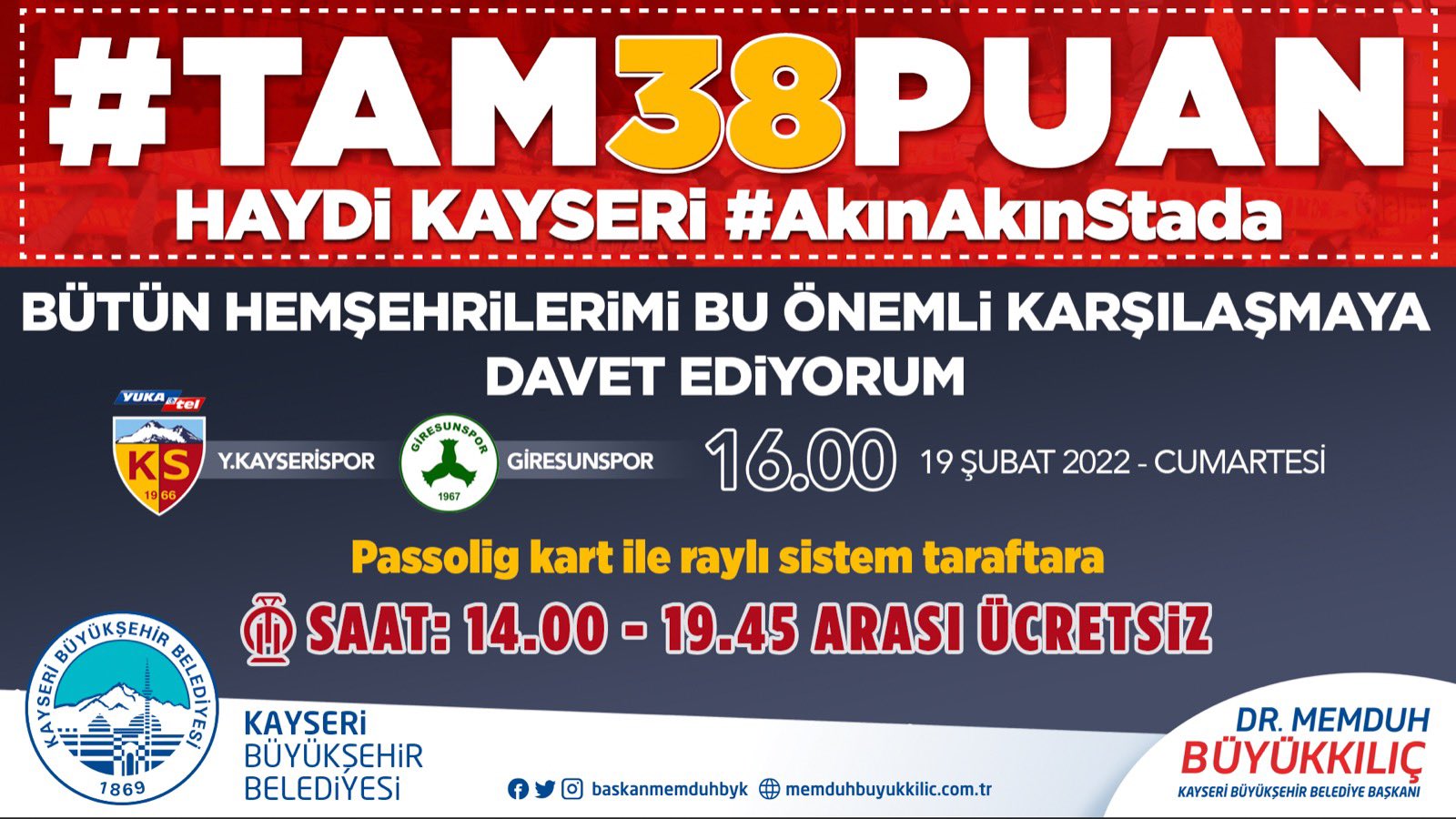Büyükkılıç, konu ile ilgili yaptığı açıklamada, “Haydi Kayseri, puanımızı 38’e