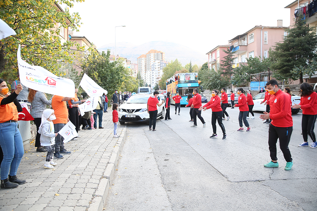 Kayseri Büyükşehir Belediye Başkanı Dr. Memduh Büyükkılıç, Lösemili Çocuklar Haftası dolayısıyla Büyükşehir Belediyesi Spor A.Ş.’nin ve LÖSEV’in iş birliği kapsamında lösemi ile savaşan minik kahramanların mahallelerinde moral etkinliği yaptıklarını ve ilk durağın Lösemili minik Ayşe’nin mahallesi olduğunu söyledi. Büyükkılıç, “Çocuklarımızın gülümsediği her an hayatımıza sanki yeni bir renk katılıyor. Sizin aydınlık yüzleriniz hep gülerse, bizler mutlu oluruz” dedi. Kayseri Büyükşehir Belediyesi Spor A.Ş. 2-8 Kasım Lösemili Çocuklar Haftası nedeniyle lösemi hastalığı ile mücadele eden çocuklara destek olmak için kentte bir dizi etkinlikler yapıyor. Büyükşehir Belediyesi Spor A.Ş. ile LÖSEV’in işbirliği kapsamında, LÖSEV’in Hayatta umutlu ol sen her zaman , unutma HER ÇOCUK KAHRAMAN! #LÖSEVDEHERÇOCUKKAHRAMAN sloganları ve hashtagleri ile düzenlenen etkinlikler lösemi çocukların mahallelerine neşe kaynağı oldu. Birçok lösemili çocuğun sokağına gidilerek üstü açık otobüs, Bando Takımı ve Spor A.Ş. Etkinlik aracıyla giderek müzik eşliğinde dans gösterileri yapıp, hediyeler veriliyor. Dört gün sürecek olan etkinlik çocukların isteğine göre uzatılabilecek. Çıkılan bu güzel yolun ilk durağı ise kahraman minik Ayşe’nin oturduğu Talas ilçesi, Rüzgar Sokağı oldu. Birbirinden güzel danslar, bando takımı ve birçok etkinlik minik Ayşe’yi çok sevindirdi. “LÖSEMİ DEĞİL, İYİLİK VE SEVGİ BULAŞICIDIR” “Lösemi değil, iyilik ve sevgi bulaşıcıdır” diyen Büyükşehir Belediye Başkanı Dr. Memduh Büyükkılıç, lösemili çocukların yüzlerini güldürmek için yapılan etkinliklerin en büyük moral ve sevgi olduğunu ifade ederek, şunları söyledi: “Büyükşehir Belediyesi olarak, yaptığımız altyapı ve üstyapı hizmetlerinin yanı sıra gönül belediyeciliğini de asla unutmuyoruz. Bu anlamlı etkinliklerle farkındalık oluşturmak istiyoruz. Çocuklarımızın gülümsediği her an hayatımıza sanki yeni bir renk katılıyor. Büyükşehir Belediyesi olarak, birçok lösemili çocuğumuzun sokağına üstü açık otobüs, Bando Takımı ve Spor A.Ş. etkinlik aracıyla giderek dans eğitmenlerimiz müzik eşliğinde dans gösterileri yapacaklar. Ayrıca birçok hediyeler vereceğiz. Yavrularımızın verdiği mücadeleye bu yapılan etkinlikler az bile. İsteğe göre bu tarih uzayacak. Sizin aydınlık yüzleriniz hep gülerse, bizler mutlu oluruz.”