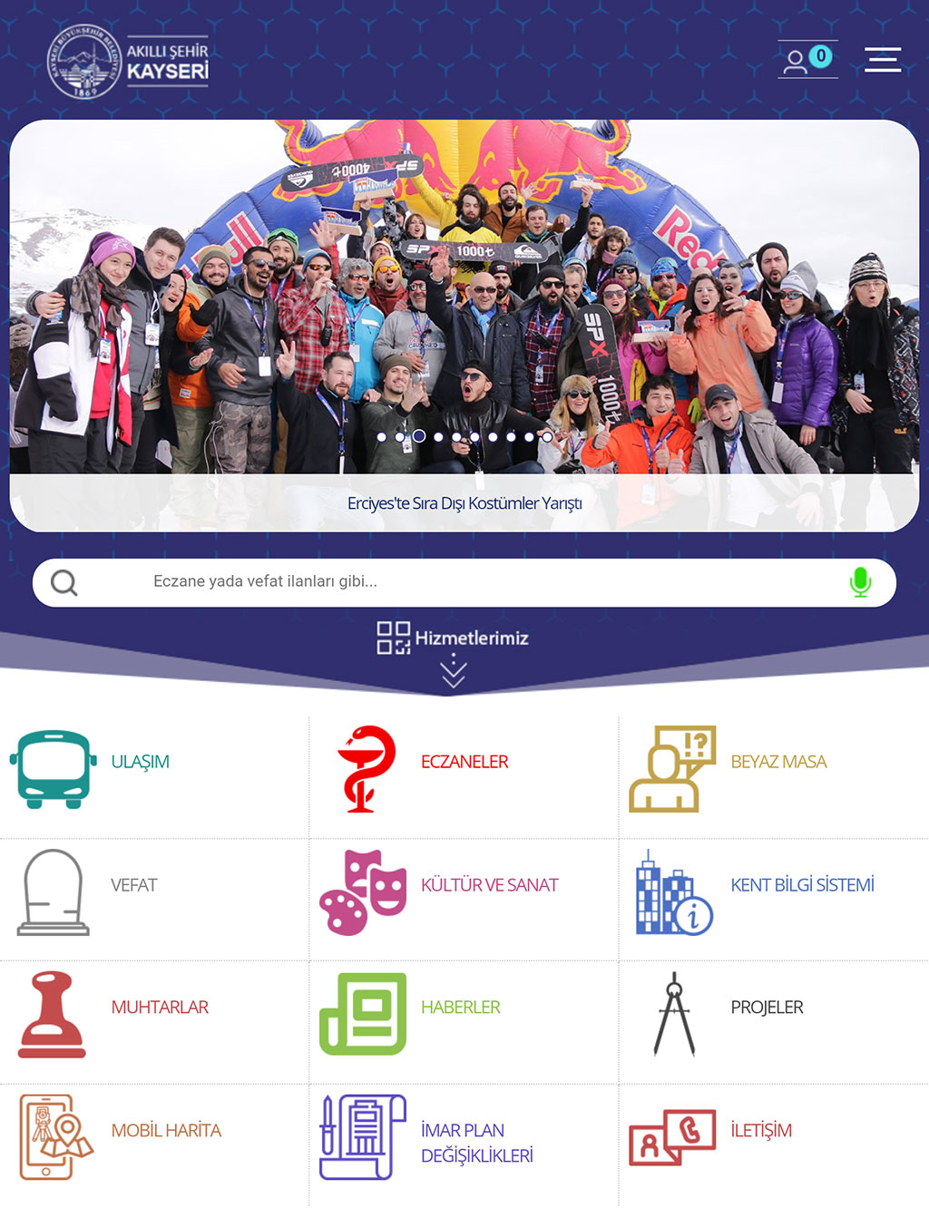 Büyükşehir Belediyesi’nin kurumsal mobil uygulaması Akıllı Şehir Kayseri büyük bir ilgiyle kullanılmaya başlandı. Android ve İOS işletim sistemine sahip cihazların kullanıcıları Büyükşehir Belediyesi’nin mobil uygulamasını indirerek ulaşımdan kent bilgi sistemine, mobil haritadan kültür sanat etkinliklerine kadar pek çok alanda sunulan kolaylıklardan faydalanabiliyorlar.