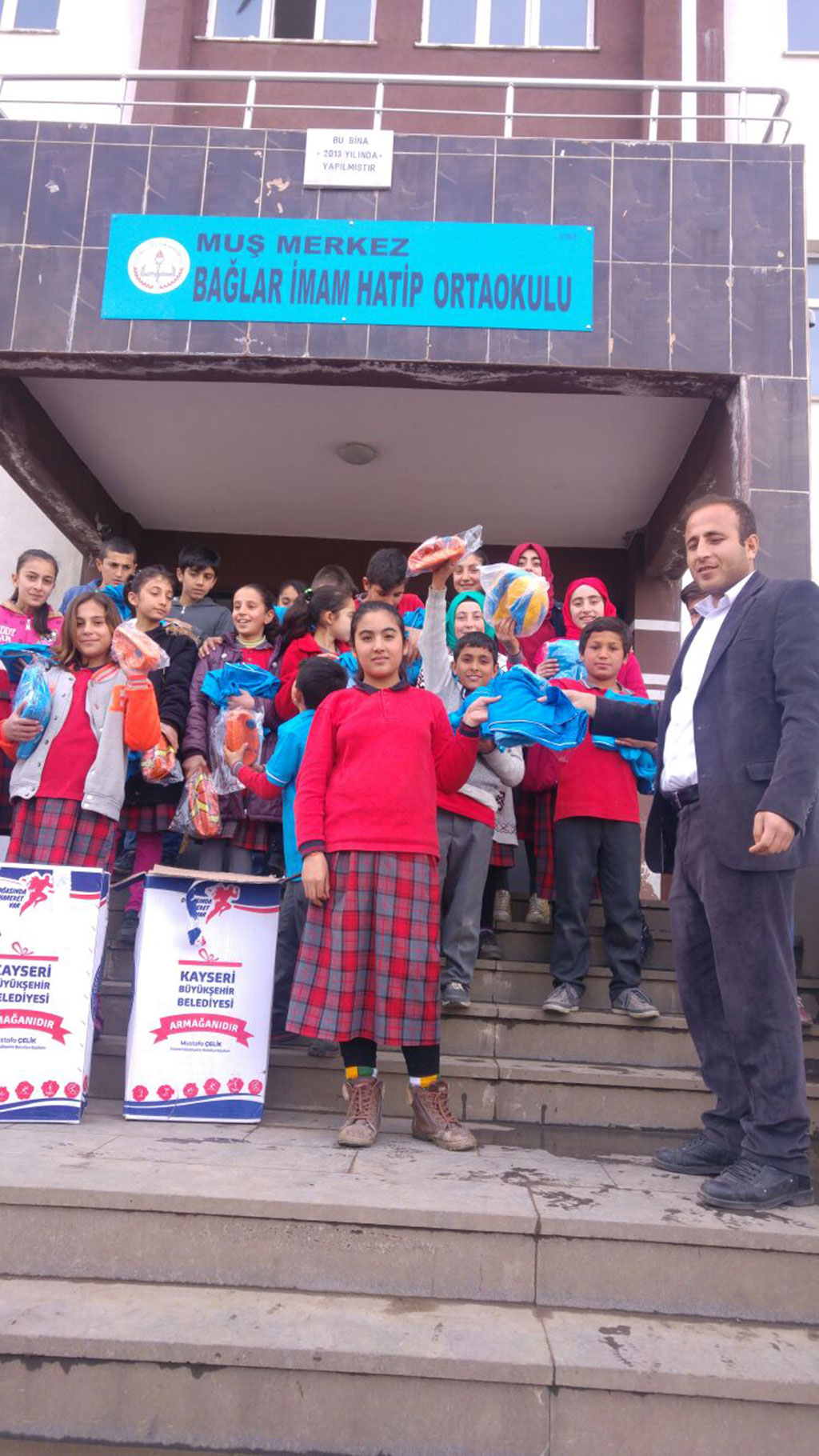 Kayseri Büyükşehir Belediyesi Spor A.Ş., Muş'ta bulunan Bağlar İmam Hatip Ortaokulu öğrencilerinin spor malzemesi isteğine kayıtsız kalmadı. Spor A.Ş. tarafından hazırlanan spor malzemeleri Muş’a gönderilerek öğrencilere teslim edildi. Öğrenciler, spor malzemelerini görünce büyük sevinç yaşadı. Muş'un Bağlar İmam Hatip Ortaokulu’nda Beden Eğitimi Öğretmenliği yapan Feyat Özcan, sosyal medya aracılığı ile ulaştığı Kayseri Büyükşehir Belediyesi Spor A.Ş.'den öğrencileri için spor malzemesi talebinde bulundu. Öğrencilerin ihtiyacı üzerine talebi değerlendirmeye alan Kayseri Büyükşehir Belediyesi Spor A.Ş., öğretmenle iletişime geçerek okula spor malzemeleri gönderdi. Öğretmen Feyat Özcan ve okul idaresi tarafından öğrencilere dağıtılan spor malzemeleri büyük sevinç yaşattı. Okul idaresi ve öğrenciler desteklerinden dolayı Kayseri Büyükşehir Belediye Başkanı Mustafa Çelik'e teşekkür etti.