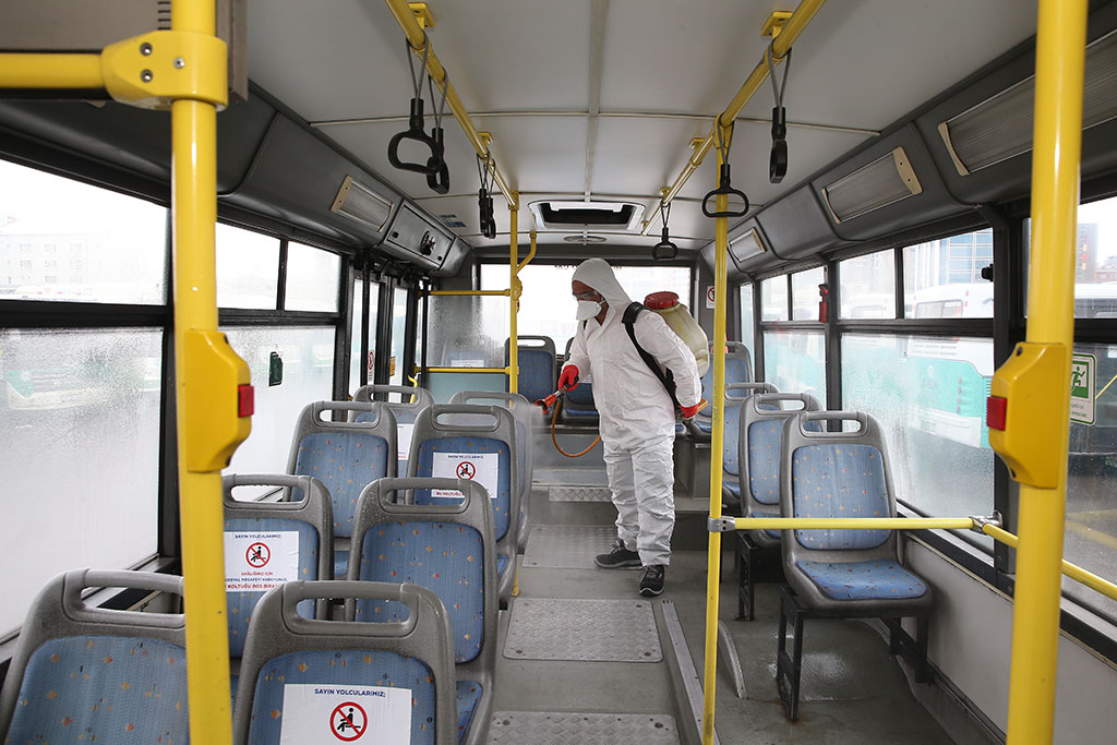 Kayseri Büyükşehir Belediyesi, hem toplu ulaşımı kullanan vatandaşların hem de çalışanların sağlığını düşünerek otobüs şoförlerine tedbir amaçlı sağlık taraması yaptırıyor. Kayseri Büyükşehir Belediyesi koronavirüs tedbirleri kapsamında yürüttüğü çalışmalarına bir yenisini daha ekledi. İl Sağlık Müdürlüğü ile işbirliğine gidilerek özel halk otobüsü şoförleri ile Ulaşım A.Ş. bünyesinde çalışan otobüs şoförleri sağlık taramasından geçirildi. Her gün binlerce vatandaşı taşıyan otobüs şoförlerinin hem kendi sağlıkları hem de olası bir risk durumunda vatandaşlara bulaştırabilme ihtimaline karşı alınan tedbirlere yenileri ekleniyor. Daha önce şoför kabinlerini şeffaf bir şekilde korumaya alan Ulaşım A.Ş. bu kez de sağlık taraması uygulamasına gitti. Büyükşehir Belediyesi’nin Kiçikapı Otobüs Hareket Amirliği’nde şoförlerin ateşleri ölçüldü, tıbbi açıdan rahatsızlıkları olup olmadıklarına yönelik tarama gerçekleştirilerek öyküleri kayıt altına alındı. Otobüs şoförlerinin sağlık taramasından geçiren Kayseri Büyükşehir Belediyesi aynı zamanda otobüslerde yapılan dezenfeksiyon işlemlerini de aralıksız sürdürüyor. Bir yanda şoförler için sağlık taraması yapılırken bir yandan da otobüsler en ince ayrıntılarına kadar dezenfekte edildi.