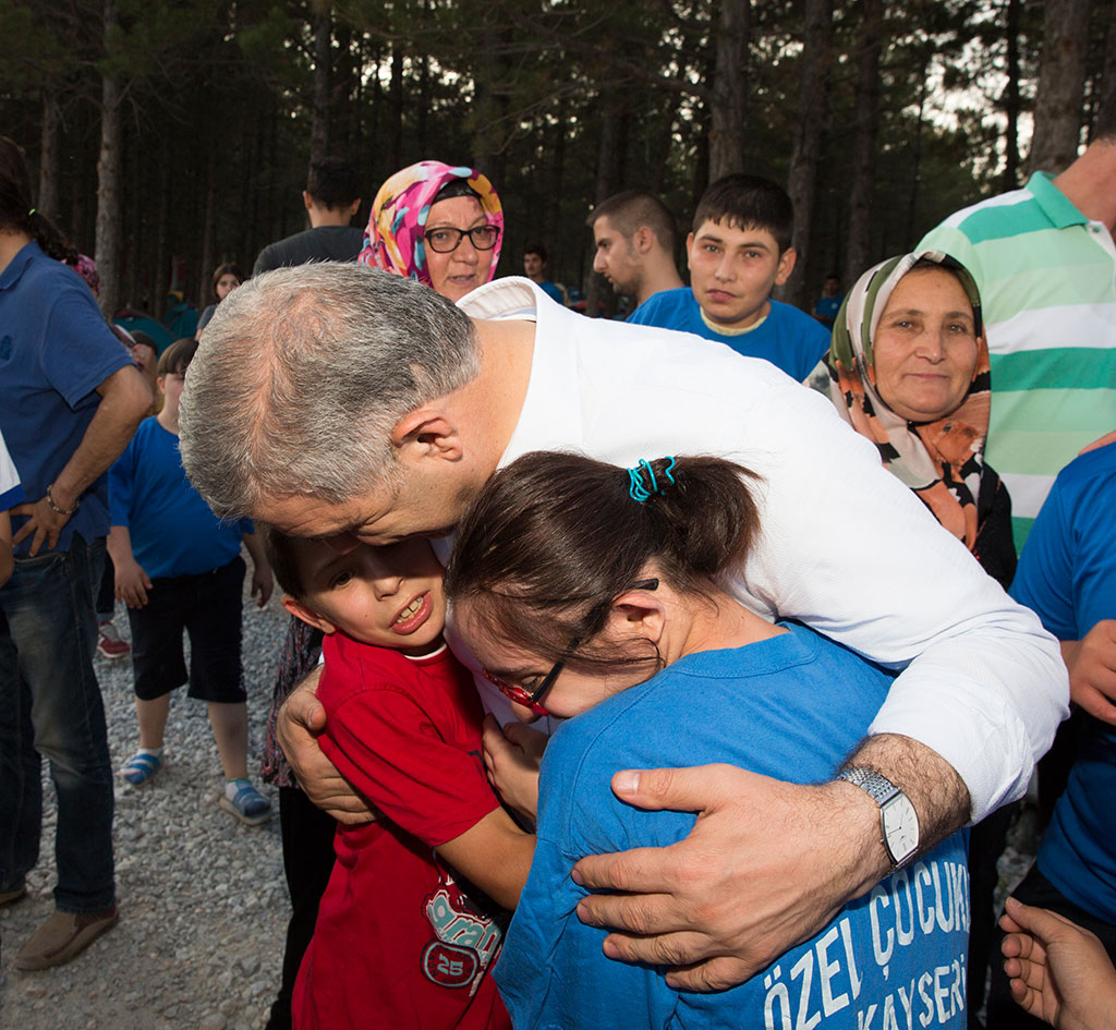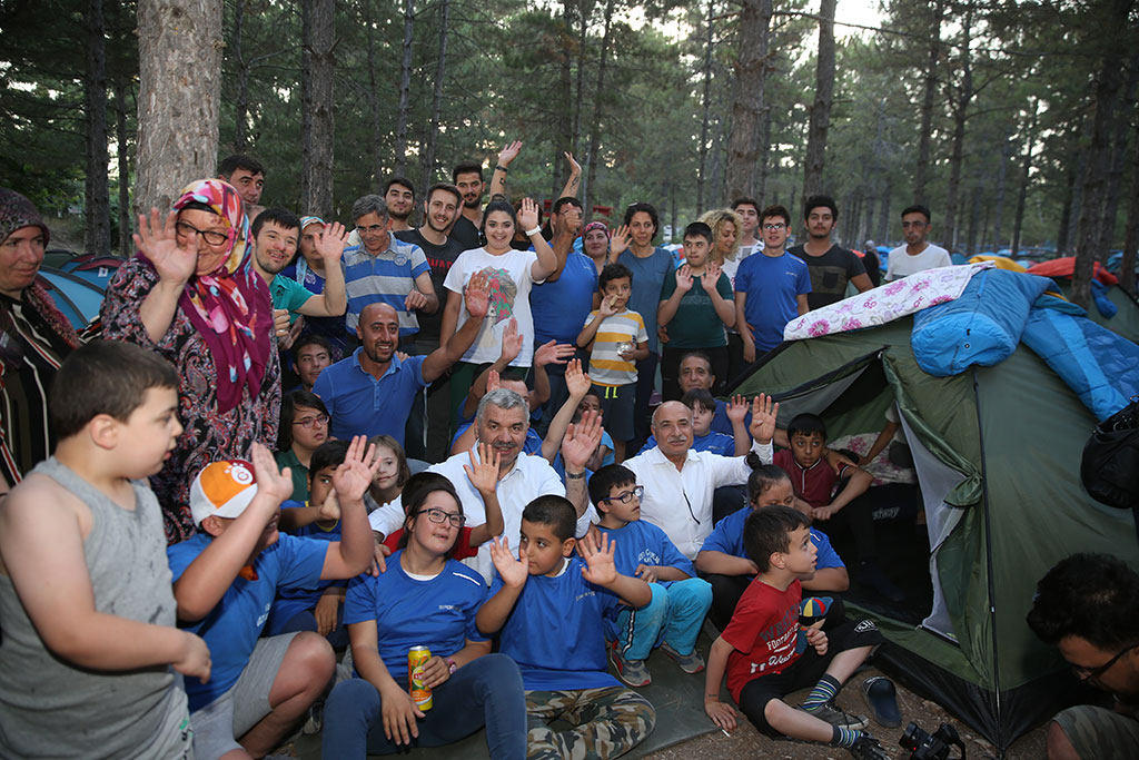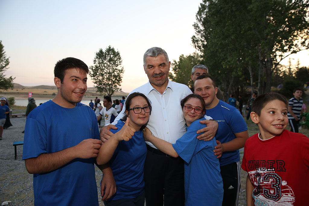 Büyükşehir Belediyesi, sosyal belediyecilikte öncülükler yapmaya devam ediyor. Büyükşehir Belediyesi Spor A.Ş. tarafından düzenlenen doğa kamplarının bu kez konukları özel çocuklar oldu. Down sendromlu çocuklar ve aileleri için gerçekleştirilen kampı Büyükşehir Belediye Başkanı Mustafa Çelik de AK Parti Kayseri Milletvekili İsmail Tamer ile birlikte ziyaret etti. Büyükşehir Belediyesi özel durumları nedeniyle sosyal etkinliklere katılmakta zorluk çeken çocuklarımız için farklı etkinlikler gerçekleştirmeye ve onların aileleri ile mutlu anlar yaşamalarını sağlamaya devam ediyor. Bu anlamda Büyükşehir Belediyesi Spor A.Ş. tarafından özel çocuklar için Sarımsaklı Barajı’nda gerçekleştirilen kampa Büyükşehir Belediye Başkanı Mustafa Çelik ile AK Parti Kayseri Milletvekili İsmail Tamer de katıldı. GÖNÜLLERE GİREN HİZMET Down Sendromlu çocuklarımız için düzenlenen kampa 48 özel çocuğumuz aileleriyle birlikte katıldı. Çocukların eğitmenlerinin de iştirak ettiği yaklaşık 100 kişilik kampta birbirinden renkli etkinlikler gerçekleştirildi. Survivor, okçuluk, oryantiring, voleybol, masa tenisi, bilek güreşi gibi aktivitelerin yapıldığı kampta özel çocuklar aileleriyle birlikte mutlu anlar yaşadı. Büyükşehir Belediye Başkanı Mustafa Çelik, tüm ailelerle ve özellikle çocuklarla yakından ilgilendi. Çocukların katıldığı etkinlikleri izleyen, onlarla sohbet eden Başkan Çelik, özel çocukların sıcacık sevgisiyle karşılaştı. Akşam üzeri ateş başında toplanan kampçılara hitap eden Başkan Mustafa Çelik, özel çocuklarımızın herkesin kalbinde özel bir yeri olduğunu belirtti. Çocukların daha fazla sosyal ortamlara katılabilmeleri için ellerinden gelen gayreti göstermeye ve farklı etkinlikler gerçekleştirmeye devam edeceklerini ifade eden Başkan Çelik, gönülleri sevgi dolu özel çocuklarla bir arada olmaktan mutluluk duyduğunu söyledi. AK Parti Kayseri Milletvekili İsmail Tamer de bu tür etkinliklerin özel çocukların gelişimine çok büyük faydalar sağlayacağını belirtti ve böylesine güzel organizasyonlar nedeniyle Büyükşehir Belediyesi’ni tebrik etti. Özel çocuklarımız, kampta açık hava sineması izleyerek ve ateş başında canlı müziğe eşlik ederek unutamayacakları anlar yaşadılar.