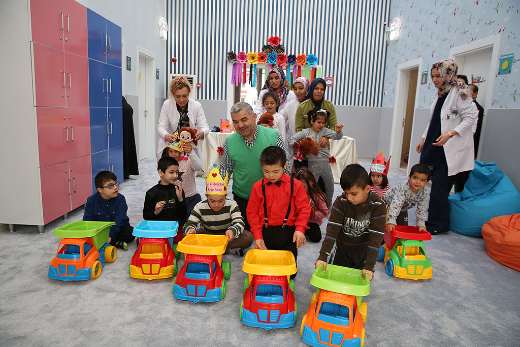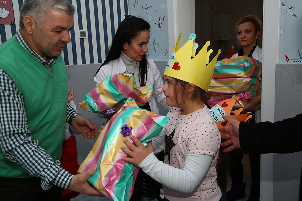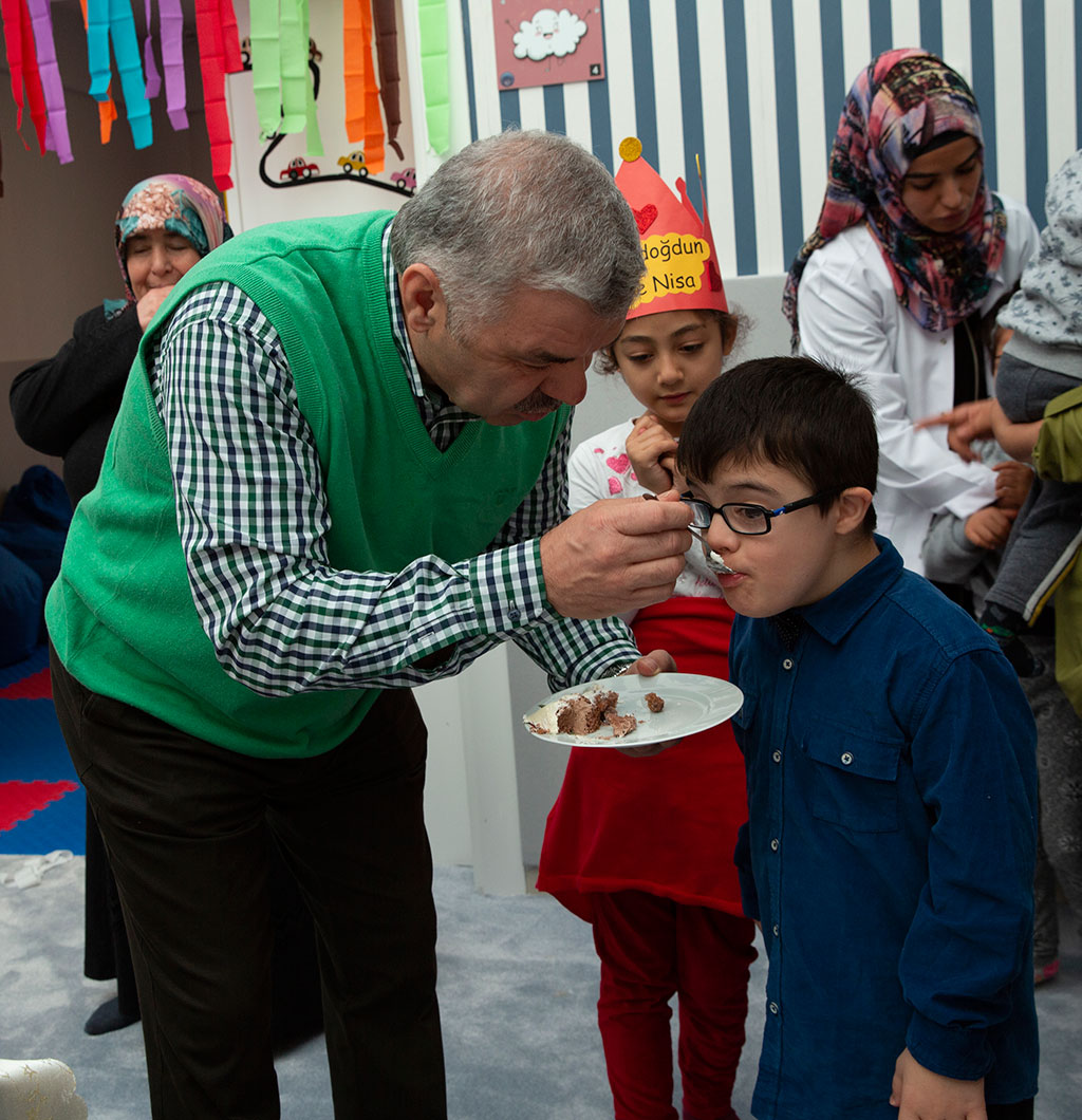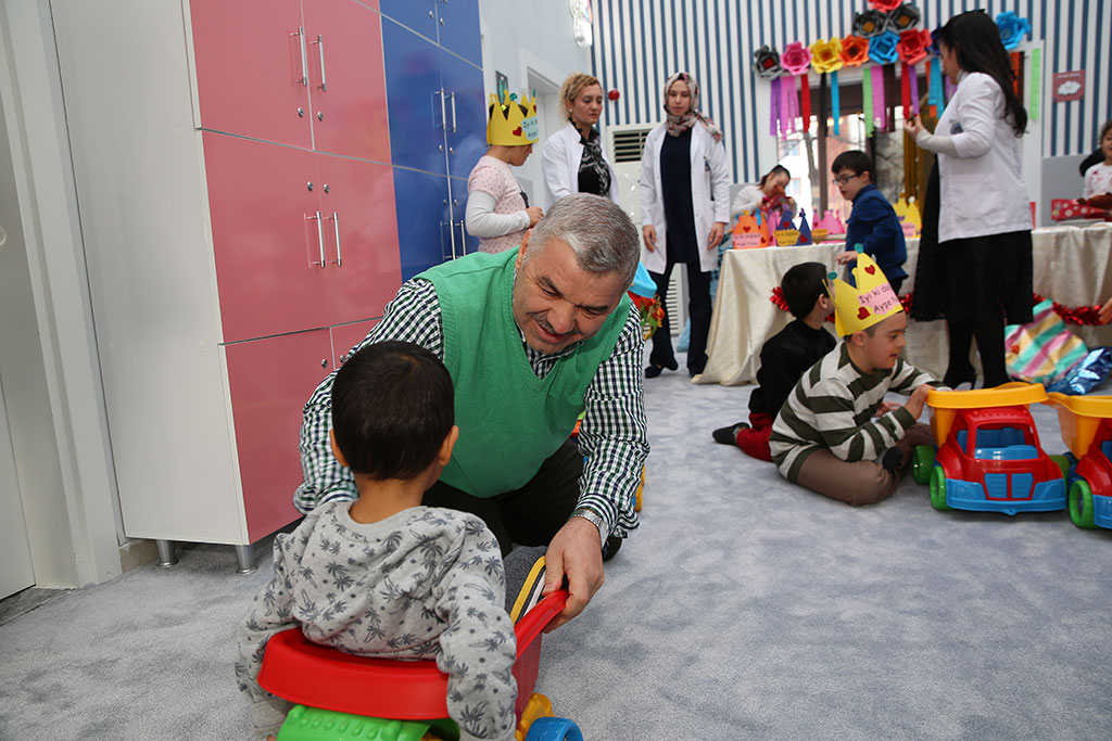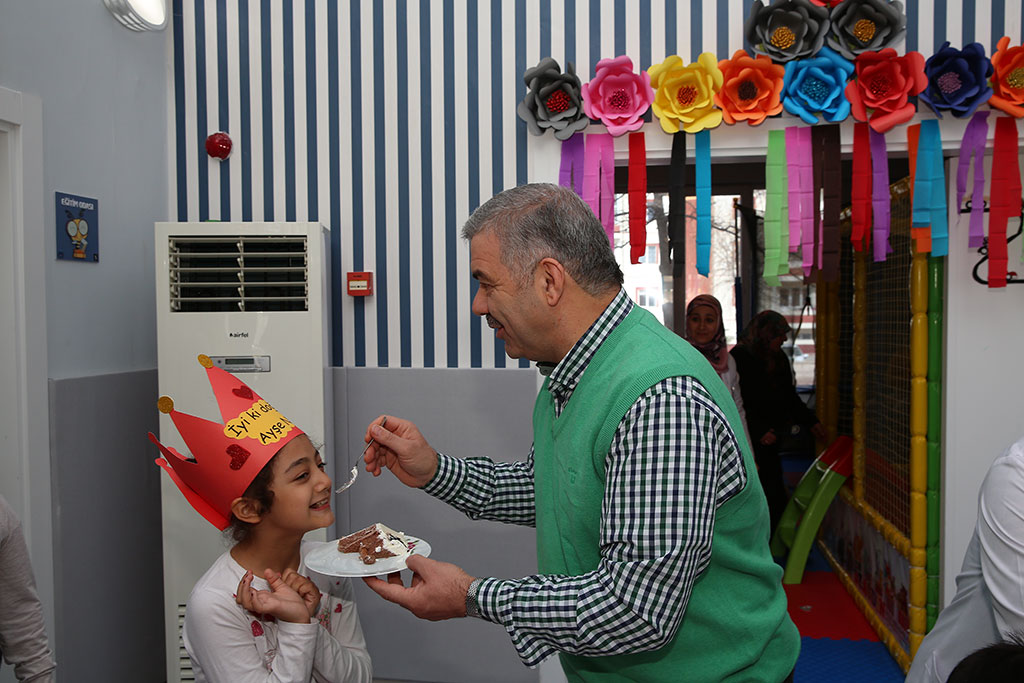 Kayseri Büyükşehir Belediye Başkanı Mustafa Çelik, büyük önem verdiği ve sık sık ziyaret ettiği Engelsiz Çocuk Evi’ne bu kez özel bir kutlama için gitti. Türkiye’de ilk ve tek olan Engelsiz Çocuk Evi’ndeki bu özel kutlamada duygu dolu anlar yaşandı. Büyükşehir Belediyesi tarafından Beyazşehir Mahallesi’nde açılan Engelsiz Çocuk Evi’nde çocuklarla ne denli yakından ilgilenildiğini gösteren bir etkinlik yapıldı. Engelsiz Çocuk Evi öğrencilerinden Ayşe Nisa’nın doğum günü için yapılan kutlamaya Büyükşehir Belediye Başkanı Mustafa Çelik de katıldı. Üzerinde Ayşe Nisa’nın fotoğrafının bulunduğu doğum günü pastasını Ayşe Nisa ile birlikte kesen Büyükşehir Belediye Başkanı Çelik, daha sonra da tek tek çocuklara pastayı tattırdı. Başkan Mustafa Çelik, özel kutlamada Ayşe Nisa ve tüm çocuklara hediyeler verdi. Başkan Çelik, çocukların oyununa da katıldı ve her biriyle ayrı ayrı ilgilendi. “AİLELERİN DUASI BİZE YETER” Otizmli, down sendromlu ve farklı gelişen çocuklar için açılan Engelsiz Çocuk Evi’nde sık sık çocuklarla bir araya geldiğini ifade eden Başkan Mustafa Çelik, “Çocukların gözündeki pırıltıyı görünce yaptığımız işlerin ne kadar doğru olduğunu çok daha iyi fark ediyoruz. Anne babaların da dualarını almak bizim işlerimizi kolaylaştırıyor ve bereketlendiriyor” dedi. Başkan Çelik, çocukların daha sosyal olabilmeleri için doğum günü ya da benzeri etkinlikler yaptıklarını da kaydetti. BİR ANNENİN EN MUTLU ANI Doğum günü kutlanan Ayşe Nisa’nın Annesi de çocuğu için böylesi özel bir gün tertip edilmesi nedeniyle duygu dolu anlar yaşadı. Konuşmakta zorluk çeken Anne, Başkan Çelik’e Engelsiz Çocuk Evi’ni açması ve kızı için böyle güzel bir kutlama yapılması nedeniyle teşekkür etti. “Engelsiz Çocuk Evi bizim. Burası biz ailelerin” ifadelerini de kullanan Anne, “Buradaki öğretmenler benim kızımın gözünün içine bakıyorlar” diye konuştu.