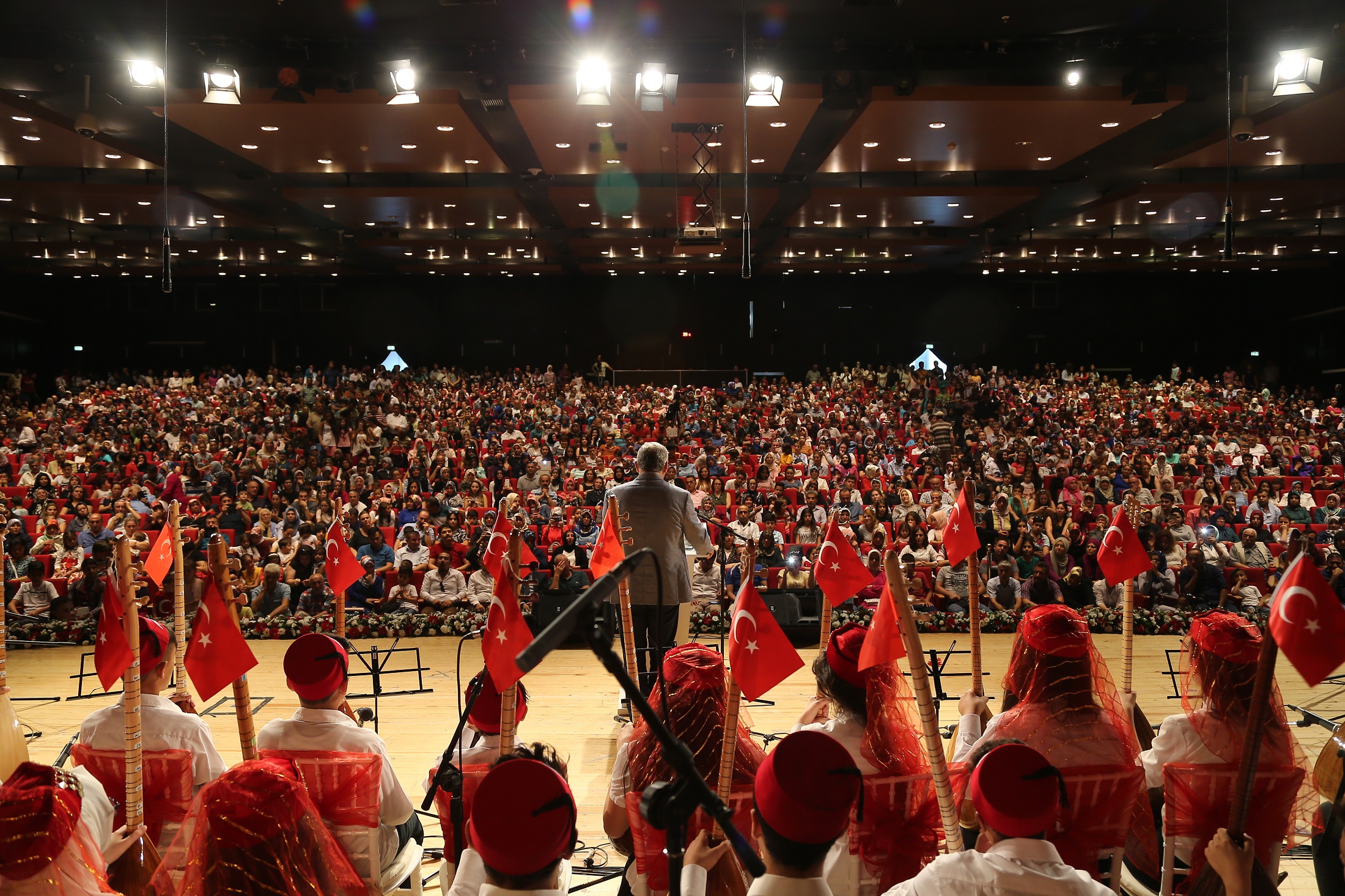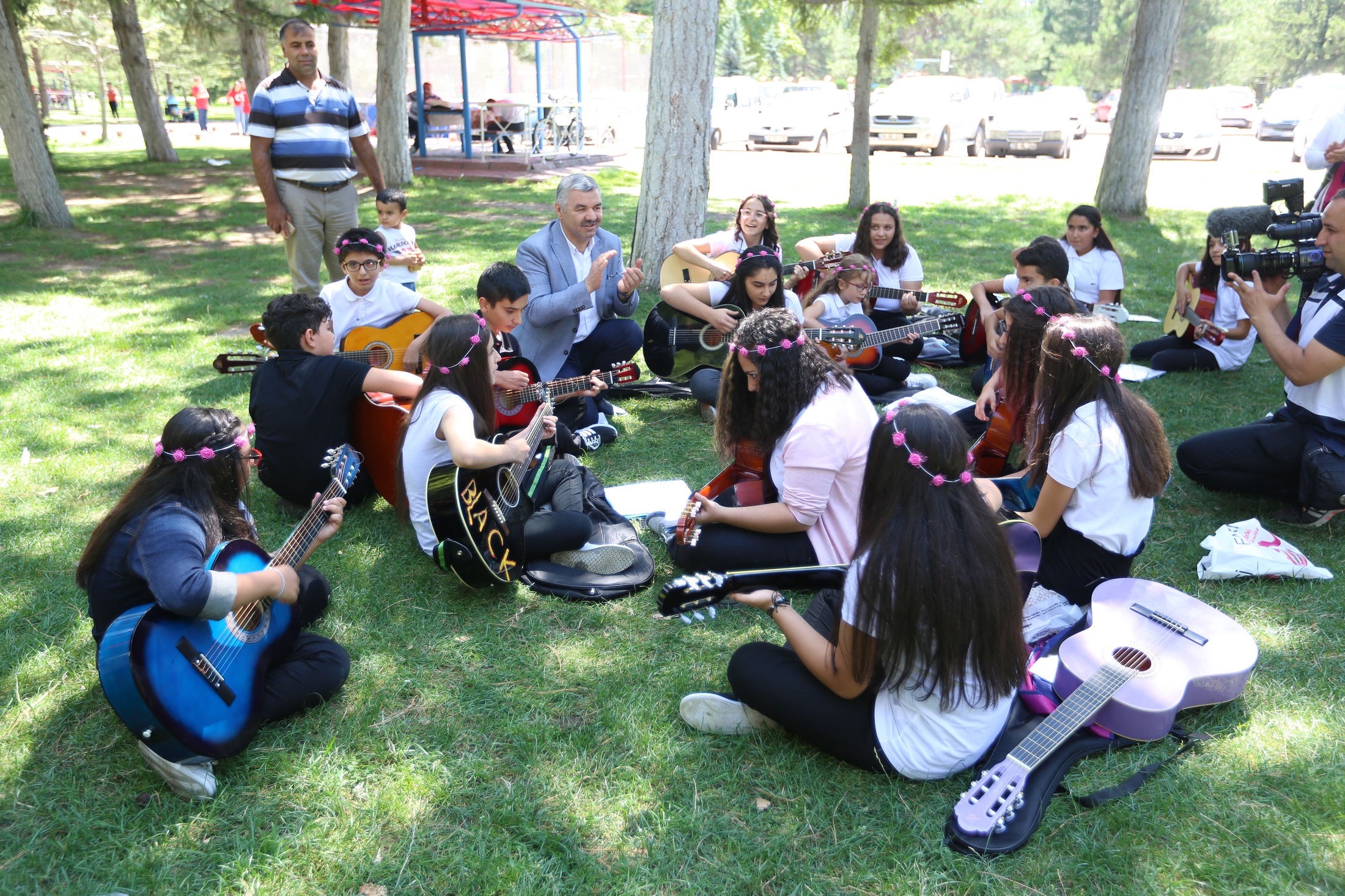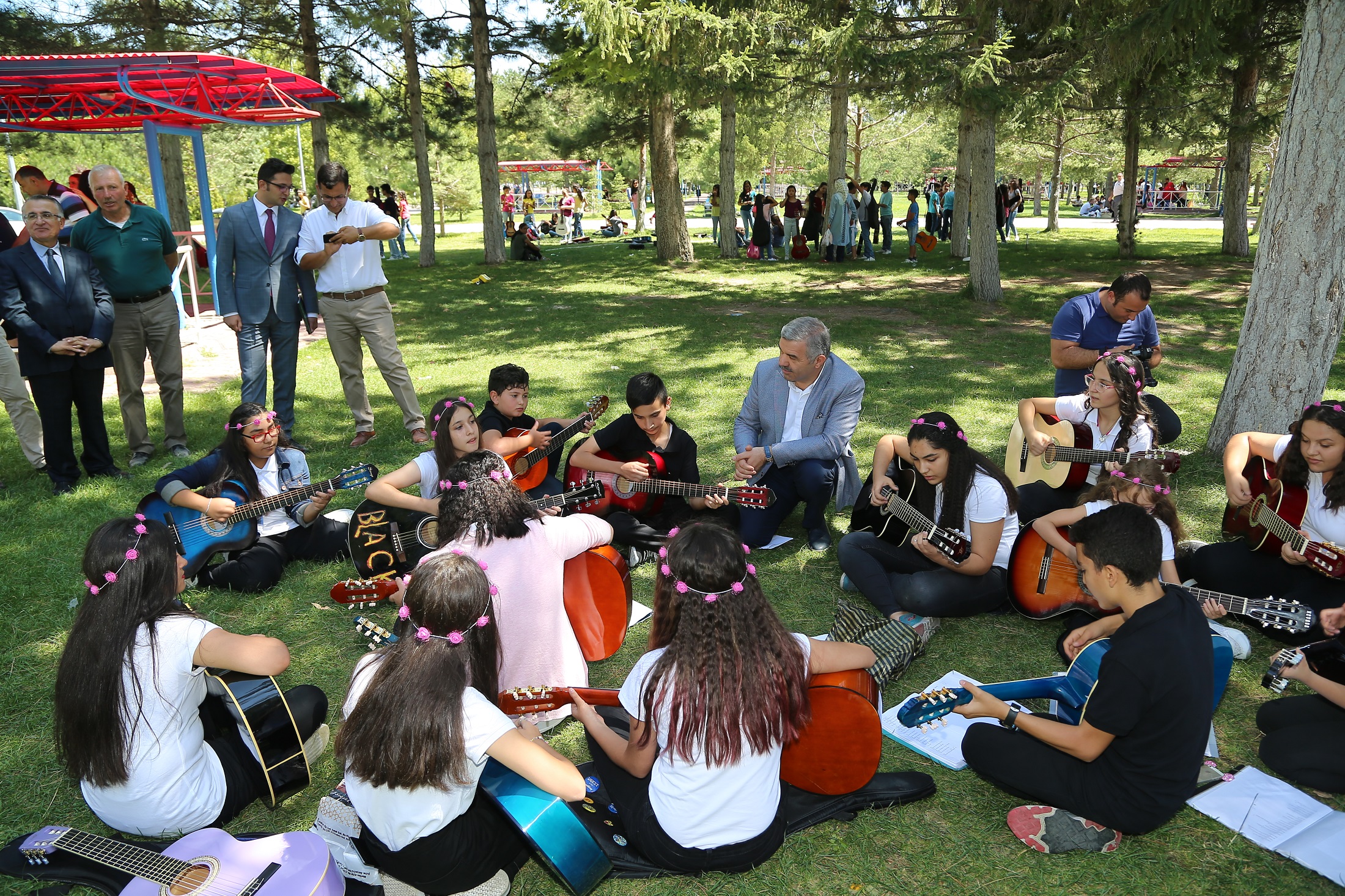 Büyükşehir Belediyesi sanata ve sanatçıya destek vermeye ve sanatçı adaylarının yetişmesi için imkanlar sunmaya devam ediyor. Yaz döneminde Büyükşehir Belediyesi Konservatuvarı’nın kurslarına katılan yaklaşık 2 bin 350 kişiye sertifikaları verildi. Sertifika Töreni ve Yıl Sonu Konseri’ne Büyükşehir Belediye Başkanı Mustafa Çelik de katılarak çocuklar ve ailelerini tebrik etti. Büyükşehir Belediyesi Konservatuvarı’nın yaz döneminin sona ermesi nedeniyle düzenlediği program Kadir Has Kültür ve Sanat Merkezi’nde yapıldı. Programa katılmak üzere Fuar alanına giden Büyükşehir Belediye Başkanı Mustafa Çelik, program saatini bekleyen gençlerle fuar alanında oturarak sohbet etti ve onların çaldığı şarkıları dinledi. Kadir Has Kültür ve Sanat Merkezi, konservatuvar kursiyerleri ve aileleri tarafından tamamen dolduruldu. Programın açılışında konuşan Büyükşehir Belediyesi Kültür ve Sosyal İşler Daire Başkanı Salih Özgöncü, her yıl kış ve yaz döneminde gerçekleştirdikleri kurslara farklı yaş ve farklı mesleklerden 5 binden fazla kişinin katıldığını söyledi. Özgöncü, çocukların ve gençlerin iyi bir yaz dönemi geçirmelerini sağladıklarını belirterek, sertifika almaya hak kazananları tebrik etti. Büyükşehir Belediye Başkanı Mustafa Çelik de konuşmasında sadece fiziki anlamda değil her alanda alt yapı hizmeti verdiklerini belirtti. Sporda, kültür ve sanatta, bilimde ve diğer alanlarda güçlü bir altyapı kurma gayreti içinde olduklarını vurgulayan Başkan Çelik, “Kayseri’den daha çok sanatçı, daha çok sporcu, daha çok bilim adamı çıkmasını arzu ediyoruz. Bunun tek yolu da sanatla, sporla, bilimle uğraşan insan sayısını artırmaktan geçiyor. İsteyen herkese bu imkanları sunmaktan geçiyor. Bu sebeple daha çok gencimizin spor yapması için imkanlar sağlıyoruz. Daha çok gencimizin bilime merak duyması için Bilim Merkezi kuruyor, onlara bilimsel çalışma yapma fırsatı tanıyoruz. Ve daha çok gencimizin bir sanat dalıyla ilgilenmesi için imkanları artırıyoruz. Bunun sonucunda da bu yıl geçen yıllardan çok daha fazla insanımıza bir sanat dalıyla ilgilenme fırsatı verdik. Yaz döneminde Büyükşehir Belediyemiz yanındaki Konservatuvar binamız ve Tarihi Kayseri Mahallesi’nde açtığımız Konservatuvarımızın Setenönü Şubesi ile birlikte 2 bin 350 kişiye dokuz ayrı branşta kurslar verilmesini sağladık. Bu yıl ayrıca önceki yıllarda olduğu gibi sadece 9-15 yaş grubundaki öğrencilerimizi değil 16 yaş üstü sanat severleri de yaz kurslarımıza aldık. Böylece her yaş grubundan sanata ilgi duyanlara fırsat tanımış olduk. Bu arada kış dönemi kurslarımız için kayıtlarımız da devam ediyor. Kış döneminde 20 ayrı branşta yaklaşık 3 bin kişiye kurs imkanı vereceğiz. Dolayısıyla bir yıl içinde sadece Büyükşehir Belediyesi olarak 5 binin üzerinde kursiyerimizi bir sanat dalında yetiştirmiş olacağız. Şehrimizdeki sanat ve sanatçı altyapısına katkı işte böyle olur. Bu gayretler inanıyorum ki gelecekte ilimizden daha çok sanatçının çıkmasını sağlayacaktır” dedi. BAŞKAN’DAN ÇOCUKLARA VE AİLELERİNE ÇAĞRI Konuşmasında çocuklarımıza ve ailelerine bir çağrıda da bulunan Başkan Mustafa Çelik, sözlerini şöyle sürdürdü: “Mutlaka herhangi bir sanat dalıyla ilginiz olsun. Mutlaka bir spor dalıyla ilgilenin. Emin olun ilgilendiğiniz sanat veya spor dalı hayatınızın her döneminde sizin bir adım önde olmanızı sağlayacaktır. Kendinizi geliştirmek ve daha sosyal bireyler olmak için attığınız her adımda Kayseri Büyükşehir Belediyesi’nin yanınızda olacağını belirtmek isterim.” Başkan Mustafa Çelik, sözlerinin sonunda yaz kurslarından mezun olan öğrencileri ve çocuklarını bu kurslara yönlendiren aileleri tebrik etti. Büyükşehir Belediye Başkanı Çelik, konuşmaların ardından bir grup öğrenciye sertifikalarını verdi. Öğrenciler de Başkan Çelik’e çiçek ve teşekkür plaketi takdim etti. Sertifikaların verilmesinin ardından yaz kurslarına katılan tüm öğrenciler grup grup sahneye çıkarak konser verdiler.