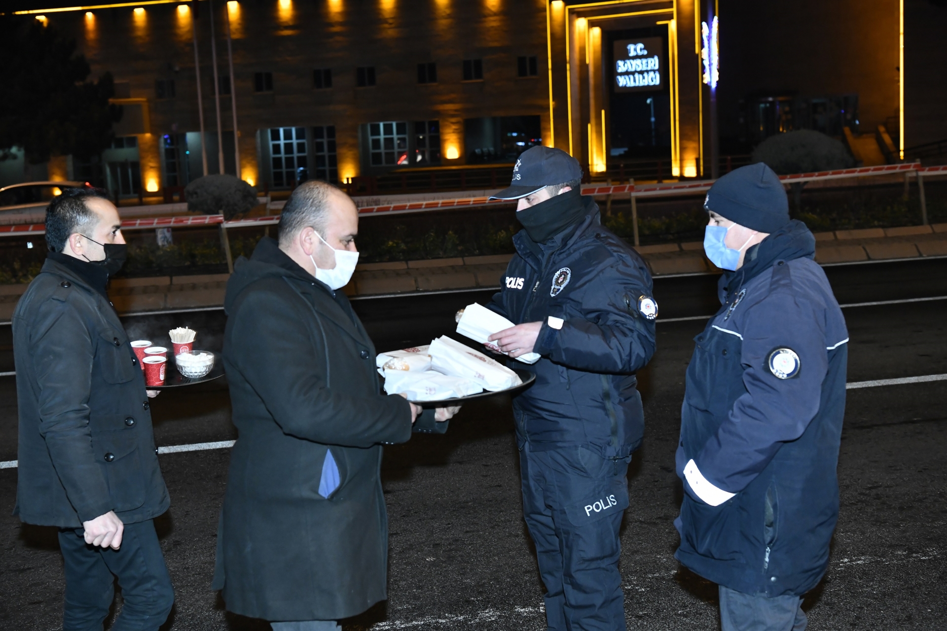 soğuk havada görev yapan polis ekipleri ve bekçiler ile zabıta ekiplerine