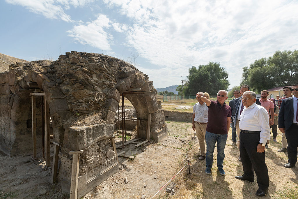 Kayseri Büyükşehir Belediyesi’nin destek verdiği kazı alanlarından birisi olan Şeker Mahallesi’ndeki Keykubadiye Sarayı kazı alanını Büyükşehir Belediye Başkanı Dr. Memduh Büyükkılıç ziyaret etti. Başkan Büyükkılıç, şehrin tarihi dokusu ve jeolojik yapısını ortaya çıkaran kazı çalışmalarının hız kazanması için destek verdiklerini belirtti. Kayseri Büyükşehir Belediye Başkanı Dr. Memduh Büyükkılıç, Keykubadiye Sarayı kazı alanında Kazı Heyeti Başkanı da olan Selçuk Üniversitesi Edebiyat Fakültesi Sanat Tarihi Bölüm Başkanı Prof. Dr. Ali Baş ile görüştü. Prof. Dr. Ali Baş, Başkan Büyükkılıç’a kazı çalışmalarının son durumu ve kazılarda çıkarılan eserlerle ilgili bilgiler verdi. Büyükşehir Belediye Başkanı Memduh Büyükkılıç’a kazı çalışmalarına verdiği destek nedeniyle teşekkür eden Prof. Dr. Ali Baş, “2015 yılından itibaren yaptığımız kazıların en büyük sponsorlarından birisi belediyemiz. Büyükşehir Belediyesi ve Şeker Fabrikası’nın desteği ile çok rahat bir kazı sezonu geçiriyoruz. En büyük sorunumuz olan kazı evi konusuna da Başkanımız çözüm getirdi. Kültür Bakanlığımız buradaki kazı için personel veriyor; ancak kazı alanında görülen tüm malzemeler Büyükşehir Belediyemiz ve Şeker Fabrikası’nın desteğiyle alınıyor. Bu destekler de bize çalışmalarımızda şevk veriyor” dedi. Prof. Dr. Ali Baş, 2014 yılında bölgede kazı çalışmalarının başlamasını sağlayan ilk buluntu olan ve Selçuklu Uygarlığı Müzesi’nde sergilenen Bahçıvan Figürü’nün birebir kopyasını kazı hatırası olarak Başkan Memduh Büyükkılıç’a takdim etti. Büyükşehir Belediye Başkanı Memduh Büyükkılıç da fedakarca çalışan Prof. Dr. Ali Baş ve kazı ekibine teşekkür etti. Bir Selçuklu şehri olan Kayseri’de böyle bir kazı çalışmasının önemli olduğunu ifade eden Başkan Büyükkılıç, “Keykubadiye Sarayı’nın yanı sıra Kültepe’deki kazılar ile Taşhan’da yapılan ve dünyada ses getiren fosil kazılarına destek veriyoruz. Bu kazılar dikkatleri Kayseri’ye çekiyor. Şehrimizin tarihi dokusu ve jeolojik yapısını ortaya çıkaran bu kazılar için Büyükşehir Belediyesi olarak elimizden gelen desteği veriyoruz” diye konuştu.