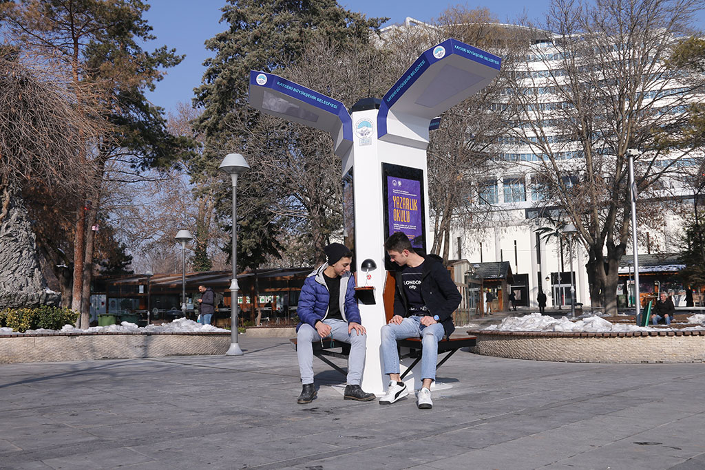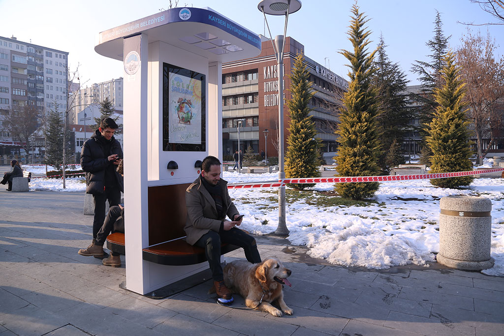 Büyükşehir Belediyesi, güneş enerjili şarj istasyonu dönemini başlattı. İlk etapta iki noktaya konulan şarj istasyonları ile telefonlar ücretsiz olarak şarj edilebilecek. Büyükşehir Belediyesi, güneş enerjisiyle çalışan iki ayrı modern şarj istasyonunu hizmete sundu. İlk etapta Büyükşehir Belediyesi yanındaki park alanı ile Kurşunlu Parkı’na konulan şarj istasyonları farklı telefonlara uyumlu şarj kabloları ile hizmet verecek. Kayseri’de yaşayanlar telefonlarını şarj istasyonlarından ücretsiz olarak şarj ettirebilecekler. Gündüz güneş enerjisi ile çalışan şarj istasyonlarına elektrik bağlantısı da yapıldı. Böylece istasyonların geceleri de hizmet verebilmesi sağlandı.