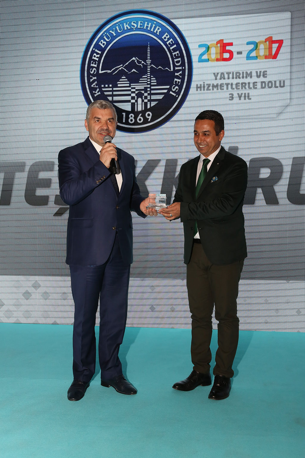 Büyükşehir Belediye Başkanı Mustafa Çelik, “Yerel Buluşmalar” adı altında farklı kesimlerle bir araya geliyor. Yerel Buluşmalar toplantısının ilki minibüs ve servis işletmecileri ile yapıldı. Kadir Has Spor ve Kongre Merkezi’nde yapılan toplantıda Büyükşehir Belediyesi’nin üç yılını değerlendiren Başkan Çelik, belediyecilik tarihinin en yoğun yıllarının yaşandığını söyledi. Büyükşehir Belediye Başkanı Mustafa Çelik, minibüs ve servis işletmecilerinin katılımıyla yapılan toplantıda ülkemiz için katma değer oluşturan, vergi veren, istihdam sağlayan herkesin yanında olmayı bir borç olarak gördüklerini söyledi. Bu anlamda esnaf ve iş adamlarına her zaman destek verdiklerini dile getiren Başkan Çelik, “Sizlerle birlikte yaklaşık 8 bin kişinin yükünü devletimizin sırtından alıyorsanız bizim de sizin yanınızda olmamız gerekiyor” dedi. “KAYSERİ BELEDİYECİLİĞİNİN EN YOĞUN YILLARINI YAŞIYORUZ” Büyükşehir Belediye Başkanlığı’na başlamasıyla birlikte toplumun her kesimiyle ortak akıl toplantıları yaptıklarını, kurum içinde beyin fırtınaları gerçekleştirdiklerini dile getiren Başkan Mustafa Çelik, her kesimin isteklerini ve önceliklerini alarak bir yol haritası belirlediklerini söyledi. “Planlı Gelişim, Estetik Dönüşüm ve Fonksiyonel Gelişim” vizyonu doğrultusunda öncelikle planlamaya önem verdiklerini vurgulayan Başkan Çelik, “Yapmış olduğumuz master planlara uygun şekilde büyük ölçekli projelere başladık. Yapım maliyeti 1 milyon TL ve üzeri 742 ihale gerçekleştirdik. Bu ihalelerin toplam bedeli 1 milyar 546 milyon TL’ye ulaştı. Üç yılda 5 bin 700 noktada çalıştık. Kayseri belediyeciliğinin en yoğun üç yılı geçti. Çünkü daha önce 5 ilçe Büyükşehir Belediyesi’ne bağlıydı; ama şimdi 16 ilçe bağlı ve biz 16 ilçede de çalışıyoruz” diye konuştu. 2015-2018 yılları arasında yapılan çalışmalarla ilgili bazı rakamlar da veren Başkan Mustafa Çelik, “656 kilometre sıcak asfalt, 1310 km sathi kaplama yol yaptık. 2 milyon 650 bin metrekare kilitli parke ile bu alanda rekor kırdık. 42 spor sahası yaptık. 260 tarım makinesini ilçelerimize dağıttık. 344 çocuk oyun grubu ve 275 bin metrekare yeşil alanı kazandırdık. 17 sosyal yaşam merkezi, 10 köprülü kavşak, 10’dan fazla bağlantı köprüsü yaptık” dedi. Kayseri’yi büyütmek ve bu şehirde yaşayanların konforunu artırmak için büyük bir gayretle çalıştıklarını dile getiren Büyükşehir Belediye Başkanı Mustafa Çelik, ulaşım, altyapı yatırımları, kentsel dönüşüm, Beydeğirmeni gibi şehre ekonomik katkı verecek projeler, yeşil alan yatırımları, ilçelere yapılan yatırımlar, sosyal tesis yatırımları, kamuya yapılan prestijli binalar, Kent Ekmek, kültür sanat çalışmaları, kütüphane yatırımları, mezarlıkta yapılan düzenlemeler, spora verilen destek, kitle sporları, KAYMEK hizmetleri, KAYTUR tesisleri BÜSAM çalışmaları, sosyal projeler, Erciyes’e yapılan yatırımlar ve tanıtım çalışmaları gibi konularda bilgiler verdi. Başkan Mustafa Çelik’in açıklamalarının ardından Kayseri Minibüsçüler ve Servis İşletmecileri Esnaf Odası Başkanı Yavuz Ay, bir şehrin farkını anlamak için başka şehirleri görmek gerektiğini belirtti ve Kayseri’nin bu anlamda farklı bir şehir olduğunu söyledi. Yavuz Ay, Başkan Mustafa Çelik’e yapmış olduğu çalışmalardan dolayı teşekkür ederek teşekkür plaketi takdim etti.