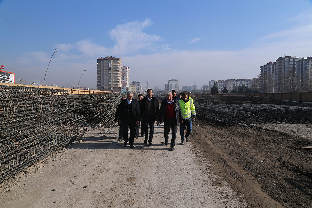 Büyükşehir Belediye Başkanı Mustafa Çelik, ulaşım yılı ilan ettiği 2017 yılının son günlerinde ulaşım yatırımlarını yerinde inceledi. Başkan Çelik, Büyükşehir şantiyelerinin tatil yapmadan yatırımları bir an önce bitirmek için yoğun bir şekilde çalıştığını söyledi. Büyükşehir Belediye Başkanı Mustafa Çelik, incelemelerine Kocasinan Bulvarı’ndaki katlı kavşak çalışmalarıyla başladı. Fuzuli Kavşağı’na yapılan katlı kavşak ile Tuna ve 30 Ağustos Caddesi Kavşaklarına yapılan katlı kavşak çalışmalarının son durumunu yerinde gören Başkan Çelik, çalışmalarla ilgili bilgiler aldı. Ulaşım Yılı ilan ettikleri 2017 yılında ulaşım yatırımlarının hızla devam ettiğini ifade eden Büyükşehir Belediye Başkanı Mustafa Çelik, “Yılın son günündeyiz ve şantiyelerimizde tatil yapmadan çalışmaya devam ediyoruz. İnşallah hem Kocasinan Bulvarı’ndaki 30 Ağustos, Tuna ve Fuzuli’deki katlı kavşakları hem de Mustafa Kemal Bulvarı’ndaki Melikgazi Katlı Kavşağı ile Hulusi Akar Bulvarı’na girişi sağlayacak olan alt geçitleri planladığımızdan önce tamamlamayı düşünüyoruz. Rabbim kazasız belasız bitirmeyi ve kullanmayı nasip etsin. Görüldüğü üzere kar kış demeden, tatil demeden çalışıyoruz” dedi. Büyükşehir Belediye Başkanı Mustafa Çelik, Kocasinan Bulvarı’ndaki katlı kavşakların ardından Mustafa Kemal Paşa Bulvarı’ndaki katlı kavşakların şantiyelerine de geçerek incelemelerde bulundu.