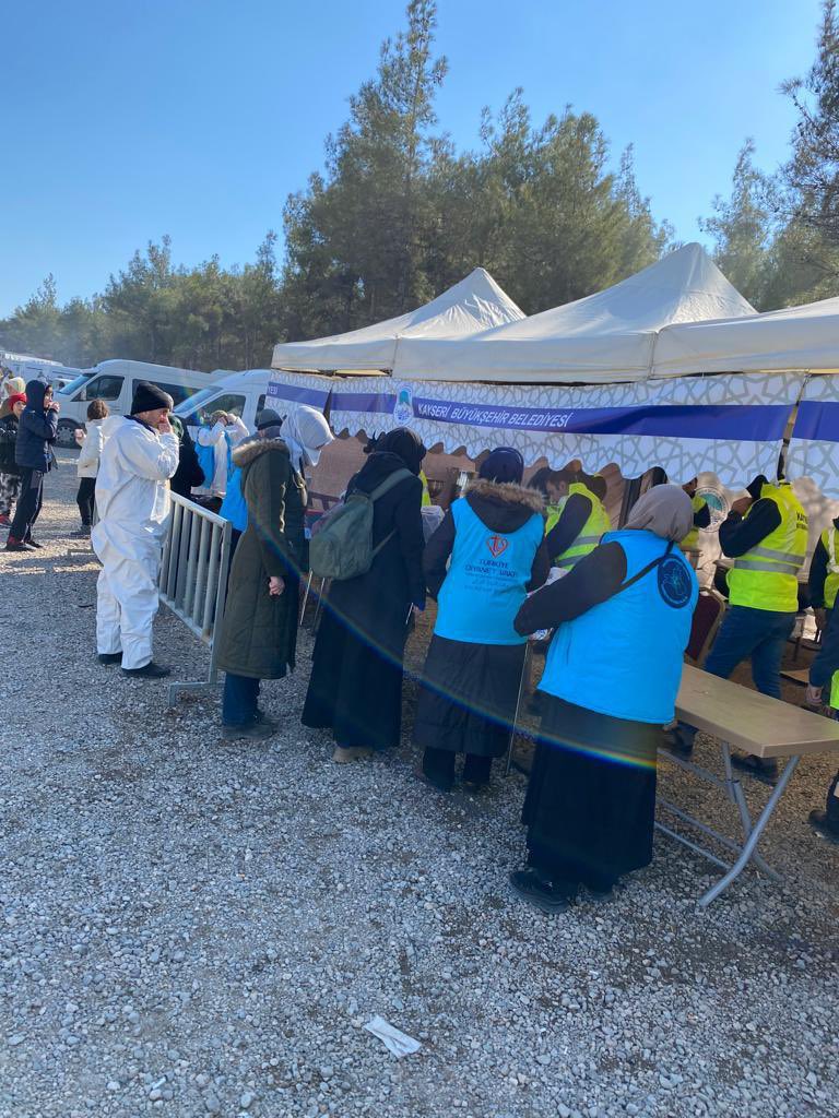 Deprem bölgesine 10 araç ve 5 mobil mutfak ve 20 kişilik aşçı ekibi gönderen Kayseri Büyükşehir, KAYTUR marifetiyle sıcak yemek dağıtım noktalarında çalışmalarını sürdürüyor.
