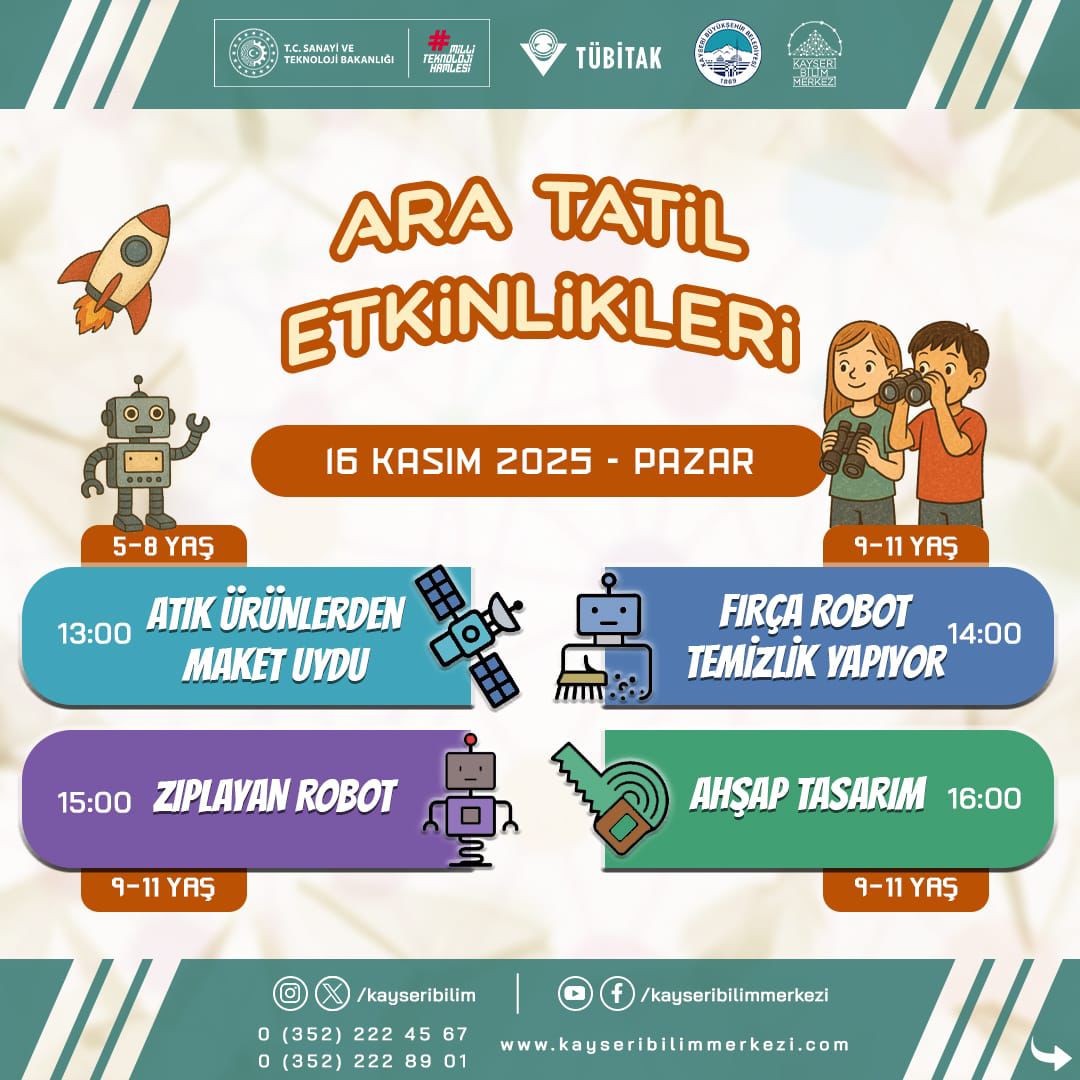 Detaylı bilgi ve kayıt için Kayseri Bilim Merkezi sosyal medya hesapları takip edilebilecek.