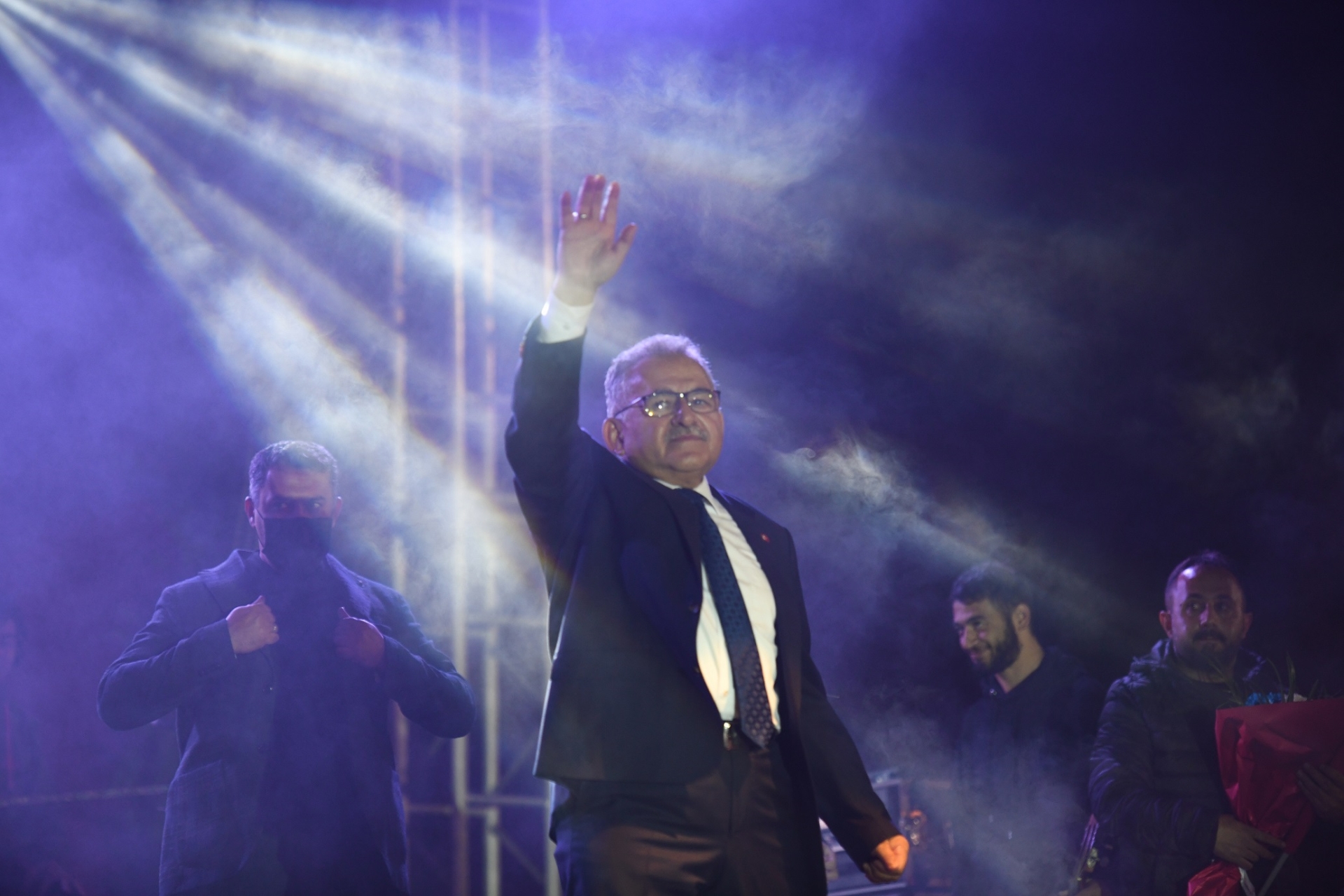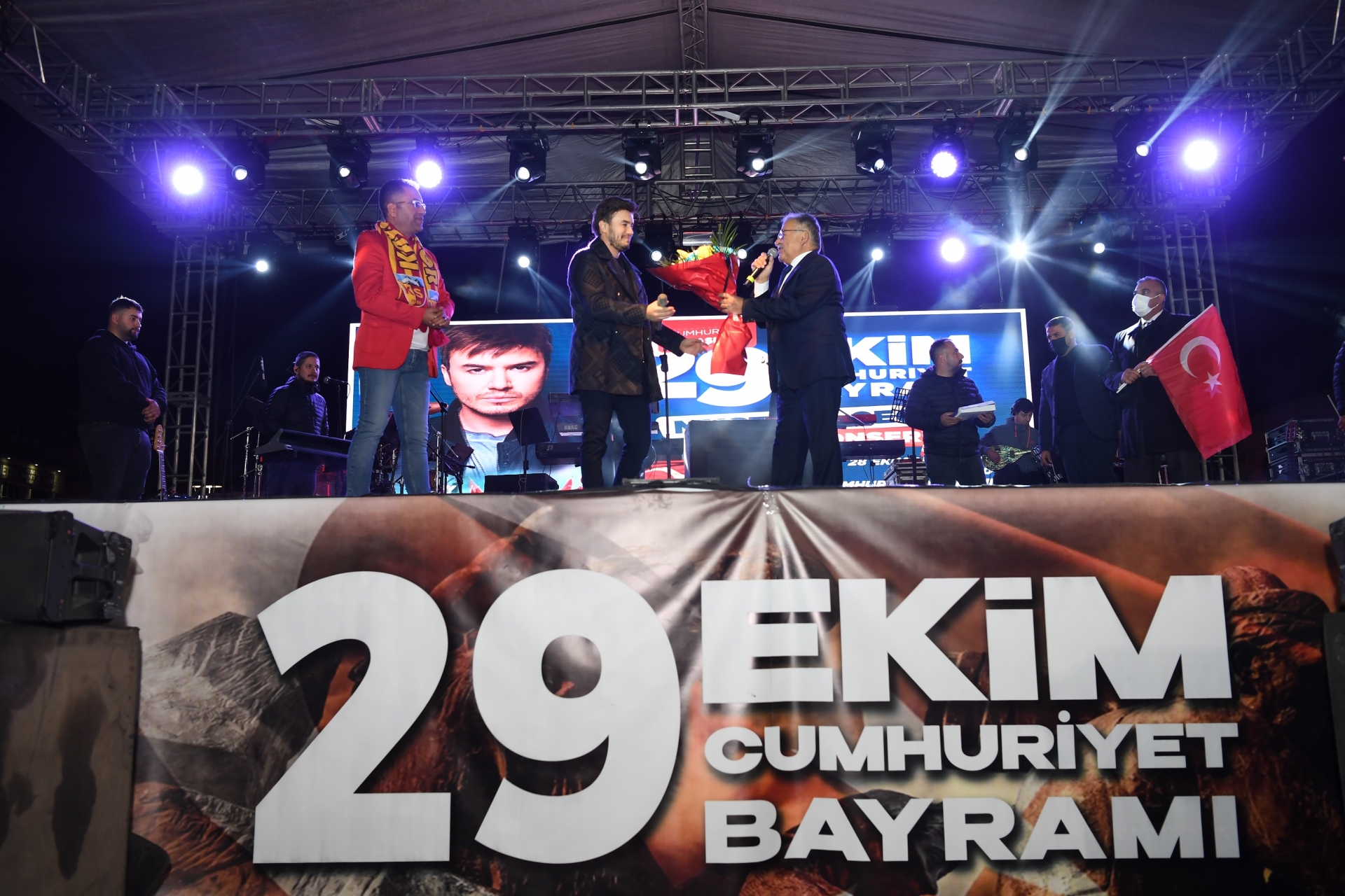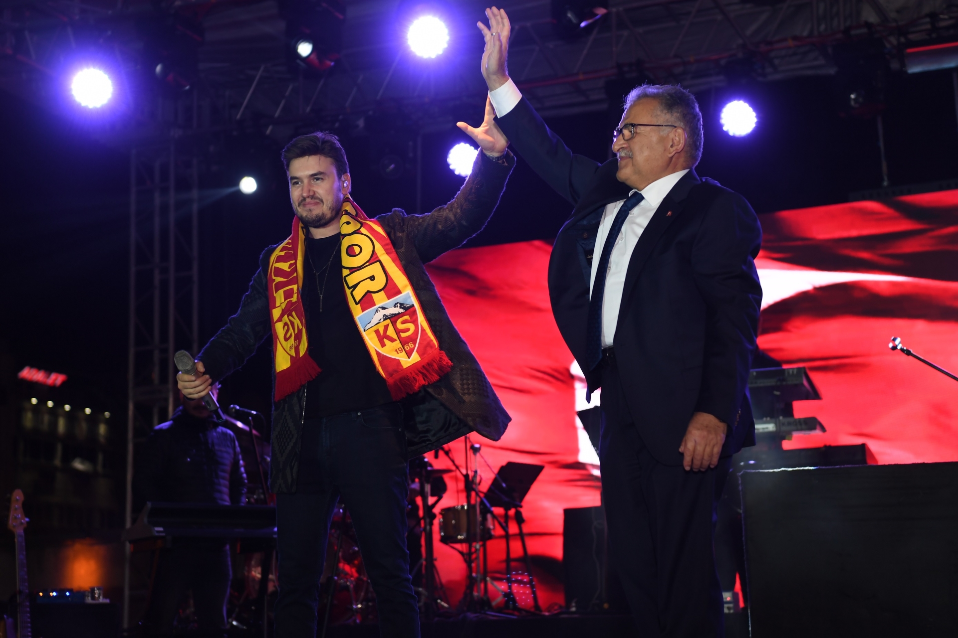 Kayseri Büyükşehir Belediyesi tarafından düzenlenen 29 Ekim Cumhuriyet Bayramı etkinlikleri kapsamında binlerce Kayserili, Mustafa Ceceli Halk Konseri ile buluştu. Konsere katılan ve gençlere seslenen Büyükşehir Belediye Başkanı Dr. Memduh Büyükkılıç, “Genç dostu bir şehir olarak, gençlerimiz için varız. Daha nice 98’li yıllara” dedi. Büyükkılıç ayrıca sanatçı Ceceli’ye elleriyle pastırma ikram etti.