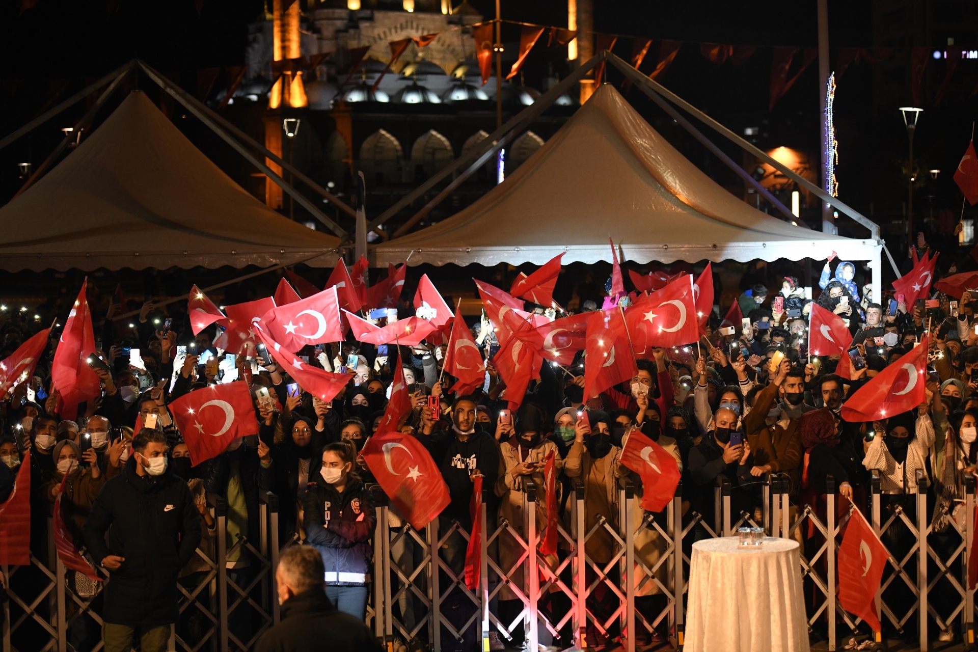 Vatandaşlar, Türk bayraklarıyla katıldığı konserde gönüllerince eğlenip, Cumhuriyet Bayramı’nı kutladı.